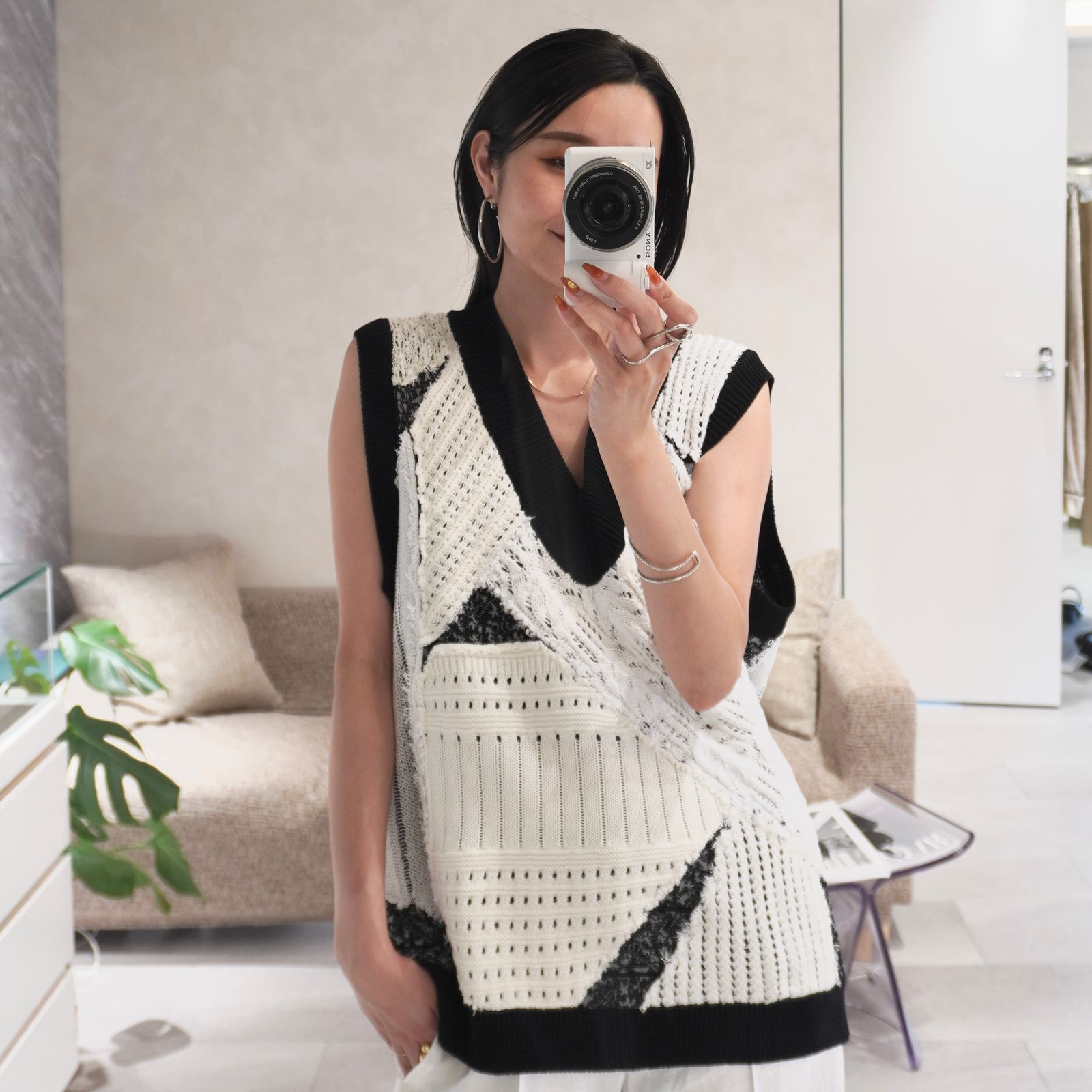 PATCHWORK V NECK KNIT VEST / パッチワークVネックニットベスト (MILK)