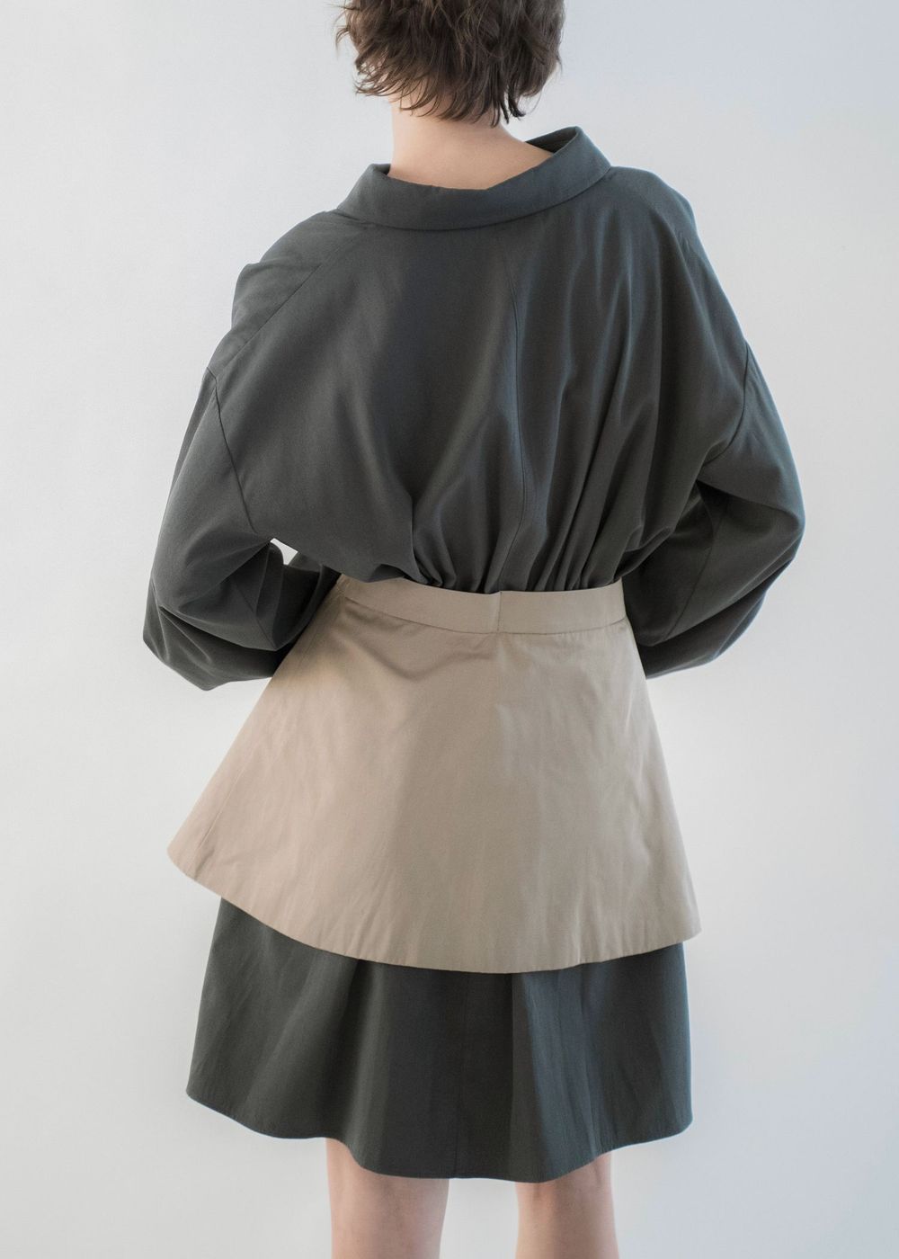 A. 身幅とヒップ周りにゆとりがあるので、お腹や腰回りを拾いにくいです。ウエストを少しブラウジングすると、気になるところは隠しつつメリハリが出ます。