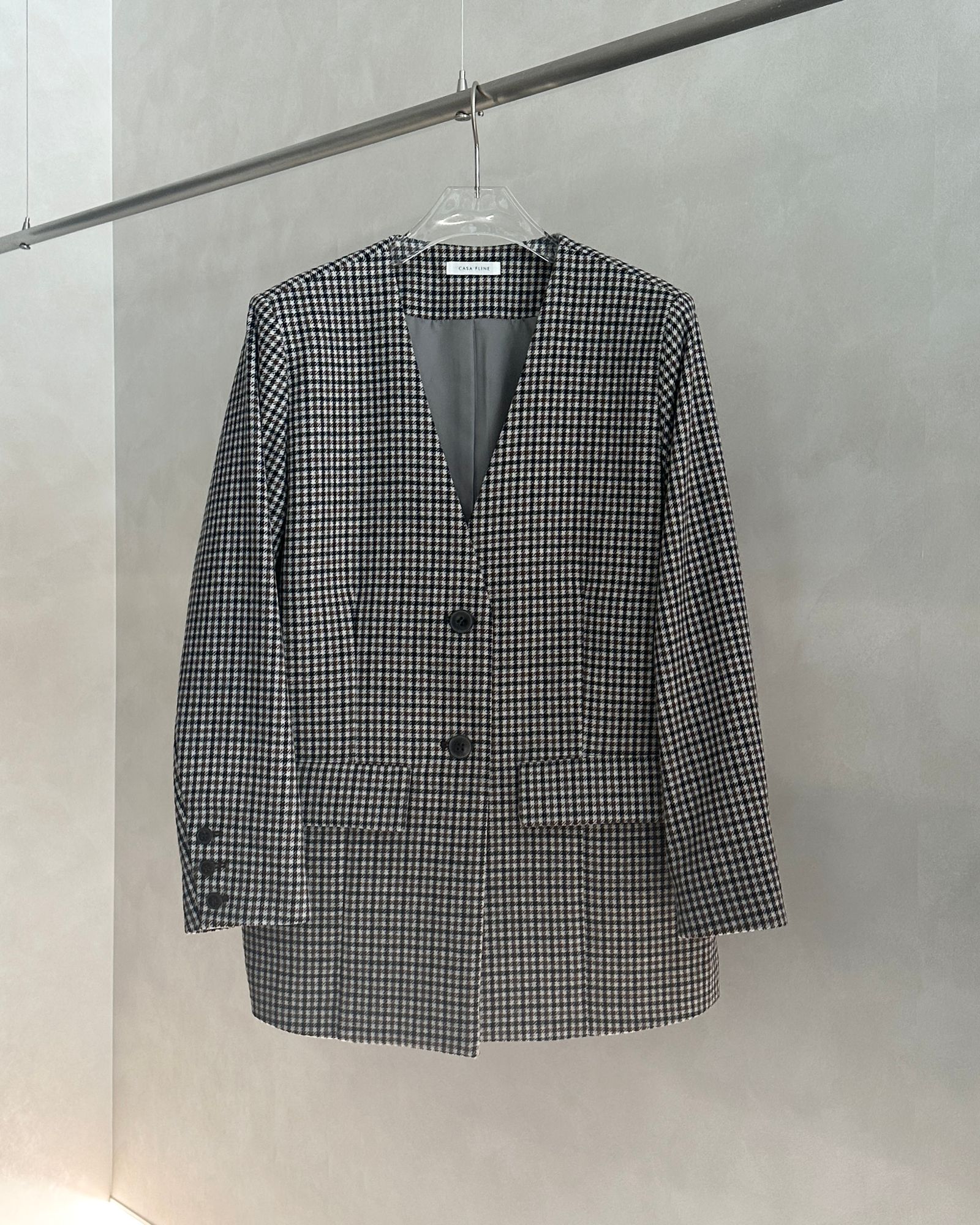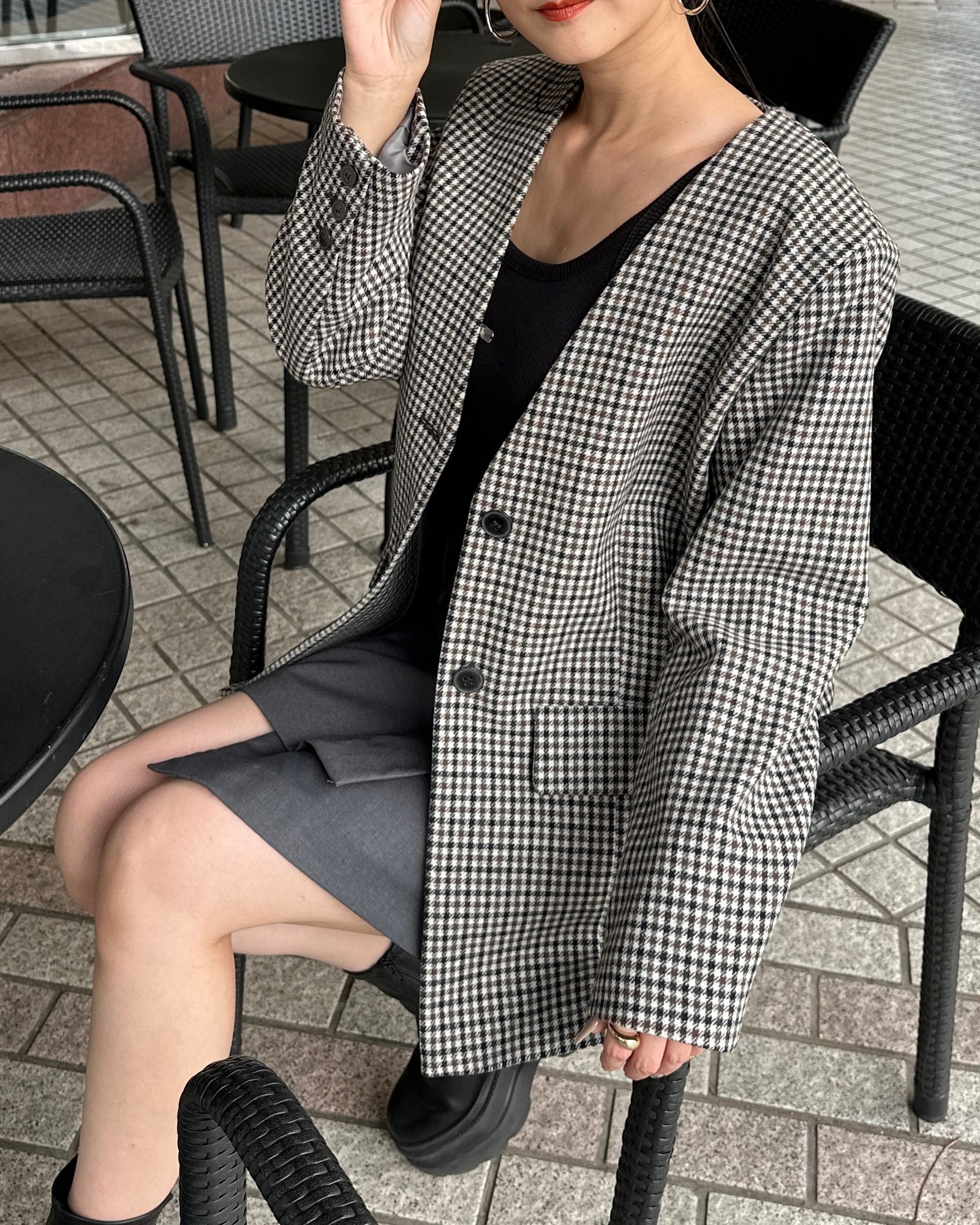 秋の冷たい風が少し肌に触れる季節。忙しい毎日でも、少し上質で洗練されたスタイルで街を歩きたくなる瞬間が訪れます。そんな時に手に取るのは、チェック柄のウールノーカラージャケット。この一着は、シンプルさと大胆さが絶妙に融合したデザインで、どんなシーンにも自然と馴染みます。
