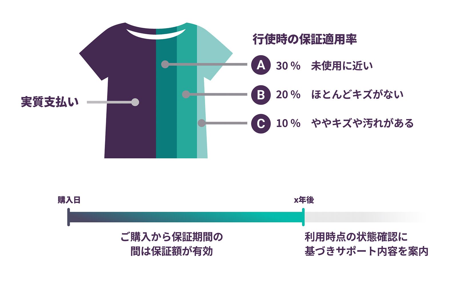 保証額は、保証期間内において、検品結果による品質ランクに基づいて算出されます。