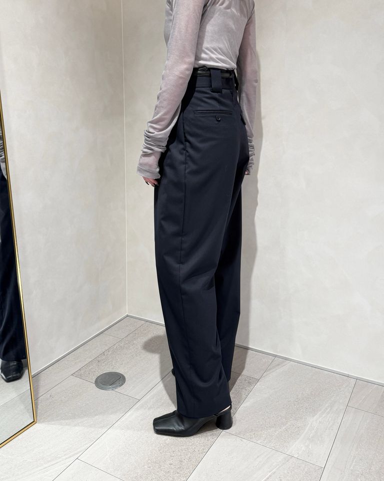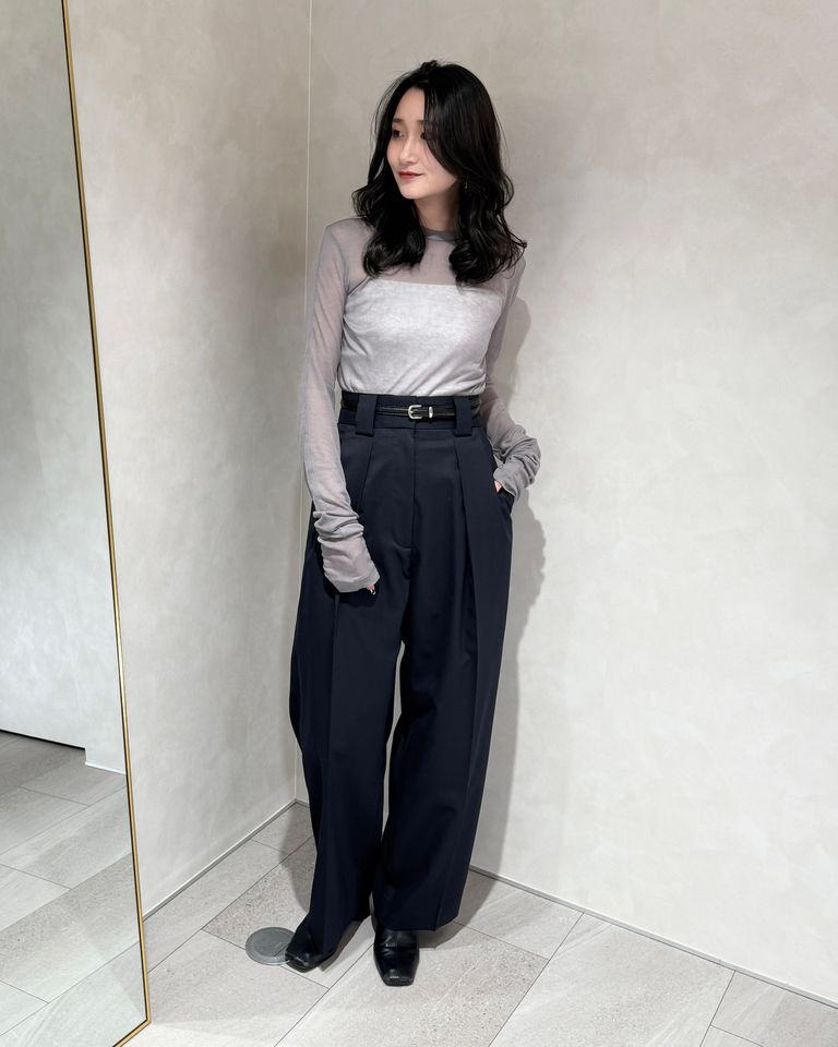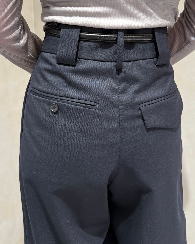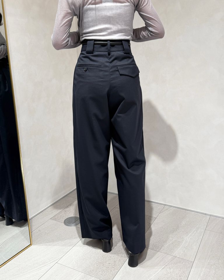 在庫なし CINOH TWILL HIGH WAIST TWO TUCK PANTS / ハイウエストツータックパンツ (ネイビー) ¥39,600 税込 1,800 ポイント還元 注文 サイズ(採寸)情報 質問する お気に入り コーディネートリクエスト不可 サイズ ウエスト ヒップ ワタリ 股上(ベルト含む) 股下 裾幅 34 67.5 93 37 35.5 71.5 25 36 70.5 96 38 36 72 26 単位:cm 商品説明 CINOH全商品はこちらからこのツータックパンツは、ウールブレンド素材で作られており、柔らかく一年中使える着心地が魅力です。ハイウエストデザインが脚長効果を演出し、どんな場面でも自然に体型を美しく見せてくれます。シンプルで上品なこのパンツは、オフィスにもデイリーにもピッタリ。さまざまなトップスと合わせやすく、一着は持っておきたいアイテムです。FABRICウール・ポリエステルの梳毛混紡糸を使用した2/2のコンパクトギャバです。 シワになりにくく、軽い着心地が特徴です。DESIGN フロントタックの取り方に特徴をつけたハイウエストパンツ。 深いタックは内と外でそれぞれのタック方向を変え、中心に立体感が出るようなディテールとなっています。 詳細情報 カラー NAVY 素材(表地) ウール50% ポリエステル50% 素材(裏地) キュプラ100% ブランド CINOH 品番 25SPT010-NV カテゴリ パンツ・ボトムス > スラックス 性別 女性 返品 不可 ラッピング 不可 配送方法 ヤマト運輸(送料について) お支払い方法 本商品でご利用可能な決済方法は下記となります。各お支払い方法についての詳細はショッピングガイドをご覧ください クレジットカード セキュリティコードとはクレジットカード裏面のサイン欄上部に記載されている数字の一番右の3桁の数字です。アメリカン・エキスプレス・カード提携のクレジットカードの場合、セキュリティコードはクレジットカード表面に記載されている4桁の数字となります。 Amazon Pay あと払い (ペイディ) 事前登録不要、クレジットカード登録不要。 メールアドレスと携帯電話番号だけで、今すぐ購入可能。 お支払いは翌月27日までに、コンビニ払い・銀行振込・口座振替で。 1か月に何度購入しても、お支払いは翌月まとめて1回でOK。 さらに、ペイディアプリから本人確認をすると、分割手数料無料*の3回あと払い**、ご利用可能額の確認、使い過ぎを防止する予算設定など、便利な機能がご利用いただけます。 *口座振替・銀行振込のみ無料 **1回のご利用金額が3,000円以上の場合のみ利用可能 PayPay(ペイペイ) 楽天ペイ サイズ(採寸)情報 サイズ ウエスト ヒップ ワタリ 股上(ベルト含む) 股下 裾幅 34 67.5 93 37 35.5 71.5 25 36 70.5 96 38 36 72 26 単位:cm このアイテムをシェア この商品について質問する