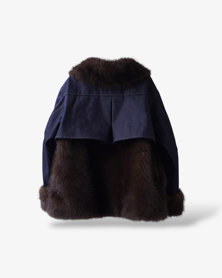 【25AW】Denim Docking Fur Jacket (ダークネイビー) / デニムドッキングファージャケット / エコファー / フェイクファー