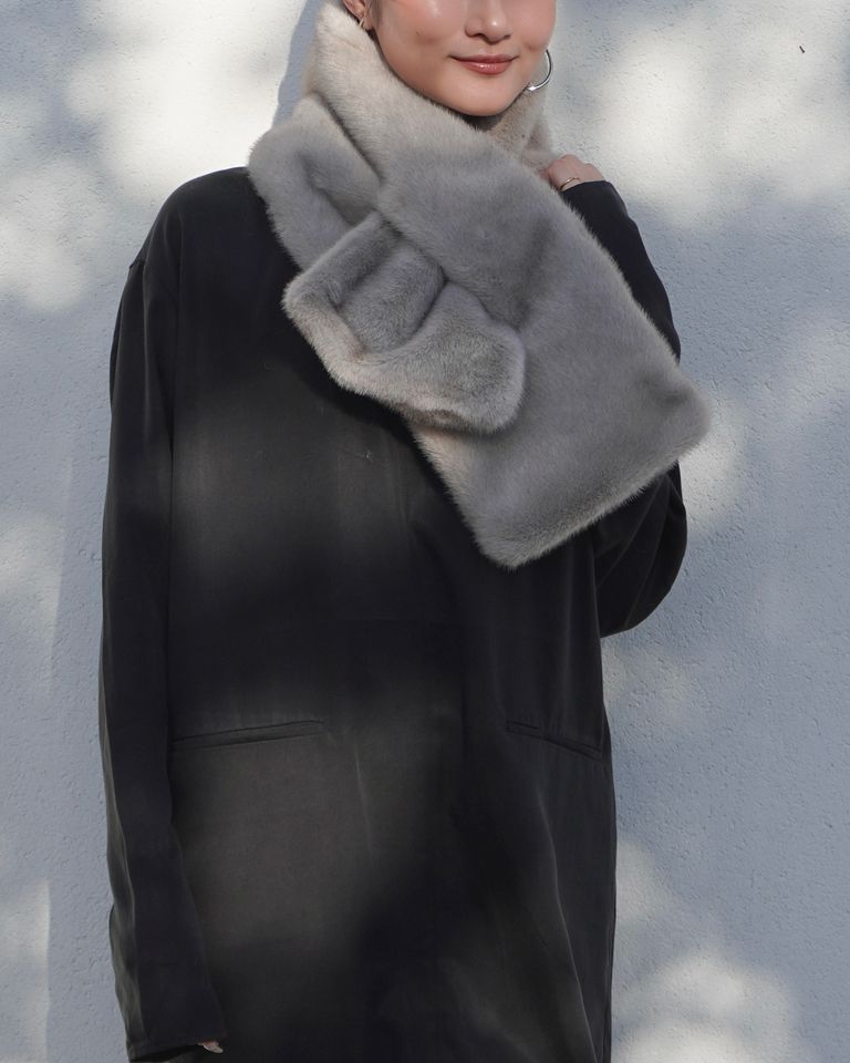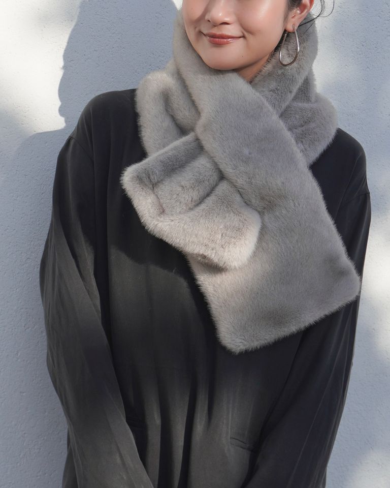 【25AW】Mink Like Fur Tippet (ライトグレー) / ミンクライクファー ティペット / ストール / エコファー / フェイクファー