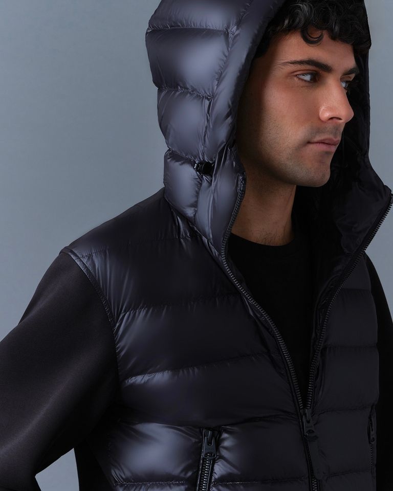 予約商品 MACKAGE 【25AW】FRANK-R / 異素材コンビダウンジャケット (ブラック) / メンズ ¥102,300 税込 4,650 ポイント還元 入荷予定時期:2025年11月上旬 注文 サイズ(採寸)情報 質問する お気に入り コーディネートをリクエストする 肩幅 身幅 着丈 裄丈 M L 単位:cm 商品説明 当店はMACKAGE正規日本代理店「J+international様」からお取引している正規販売店です。正規店からのご購入品のみブランド工場直接のアフターケア修理(有償あり)を承ることができます。並行輸入品等には十分ご注意くださいませ。光沢ナイロン×ジャージの切り替えで、軽くシャープ。FRANK-R ハイブリッドダウン。おすすめポイント・光沢感のあるナノダウン生地と、肌ざわりのよいジャージ素材を組み合わせたハイブリッド設計です。軽くて動きやすい着心地です。・表面は撥水加工。急な小雨や雪にも対応しやすく、デイリーに使いやすい仕様です。・左袖の“M”マークがアクセント。リブニットのトリムでフィット感がよく、すっきり見えます。・中綿はダックダウン90%/フェザー10%。ライトダウンながら保温性に優れます。スタイリングのヒント・インナー:無地T、薄手タートル、スウェット・ボトム:ストレートデニム、タックストレートスラックス、ジョガー・シューズ:クリーンスニーカー、サイドゴアブーツ・バッグ/小物:キャップ、メタルウォッチずっと愛用するために・着用後はハンガーに掛け、表面のほこりや水滴をやわらかい布で軽く拭き取ってください。 ・濡れた場合はタオルで水気を取り、形を整えて陰干しで完全に乾かしてください。撥水加工を損なう高温乾燥は避けます。・アイロンや高温スチーム、溶剤・アルコールの使用は避けてください。リブやジャージ部分は摩擦に弱いため、過度な擦れを避けてください。・長期保管は通気性のあるカバーを使用し、圧縮しすぎないようにしてください(ダウンのふくらみを保てます)。 詳細情報 カラー BLACK 素材(表地) ナイロン100% 素材(裏地) ナイロン100% 素材(中綿) ダックダウン(ダウン90%, フェザー10%) 素材(ジャージ部分本体) 綿53%, ポリエステル47% 素材(リブ部分) ナイロン72%, ポリエステル, 27%, ポリウレタン1% ブランド MACKAGE 品番 10752214-BK カテゴリ ジャケット・アウター > ダウンジャケット・コート 性別 男性 返品 不可 ラッピング 不可 入荷予定時期 2025年11月上旬 配送方法 ヤマト運輸(送料について) お支払い方法 本商品でご利用可能な決済方法は下記となります。各お支払い方法についての詳細はショッピングガイドをご覧ください クレジットカード セキュリティコードとはクレジットカード裏面のサイン欄上部に記載されている数字の一番右の3桁の数字です。アメリカン・エキスプレス・カード提携のクレジットカードの場合、セキュリティコードはクレジットカード表面に記載されている4桁の数字となります。 Amazon Pay あと払い (ペイディ) 事前登録不要、クレジットカード登録不要。 メールアドレスと携帯電話番号だけで、今すぐ購入可能。 お支払いは翌月27日までに、コンビニ払い・銀行振込・口座振替で。 1か月に何度購入しても、お支払いは翌月まとめて1回でOK。 さらに、ペイディアプリから本人確認をすると、分割手数料無料*の3回あと払い**、ご利用可能額の確認、使い過ぎを防止する予算設定など、便利な機能がご利用いただけます。 *口座振替・銀行振込のみ無料 **1回のご利用金額が3,000円以上の場合のみ利用可能 PayPay(ペイペイ) 楽天ペイ サイズ(採寸)情報 肩幅 身幅 着丈 裄丈 M L 単位:cm このアイテムをシェア この商品について質問する