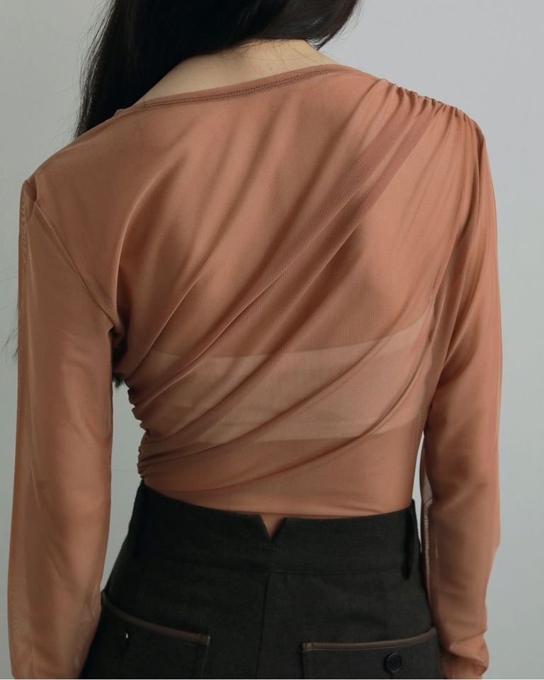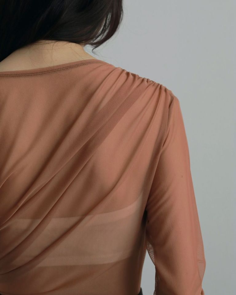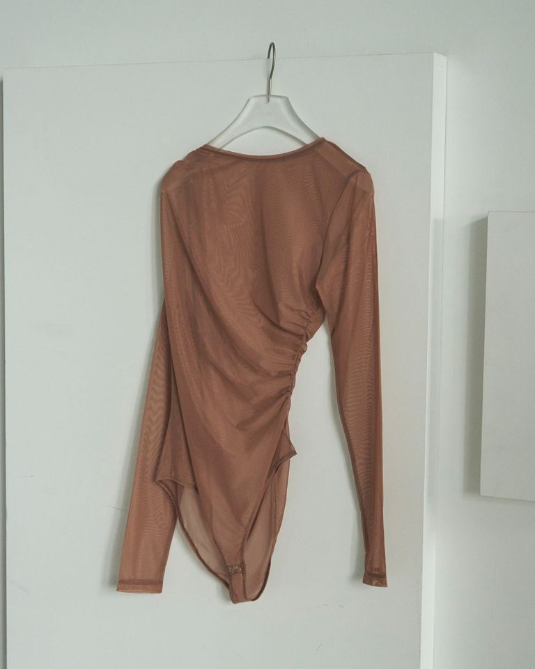 新入荷 ànuke 【25AW】Tulle Gather Bodysuit / チュールギャザーボディースーツ (テラコッタ) ¥14,300 税込 発送目安日:1-3営業日 注文 サイズ(採寸)情報 質問する お気に入り コーディネートをリクエストする SIZE F 着丈 72cm 肩幅 39cm バスト 75cm 袖丈 66cm 袖ぐり 31cm ウエスト 66.2cm ヒップ 78cm 股ぐり 54.6cm 単位:cm 商品説明 うっすら透ける“ストレッチチュール”をギャザーで表情づけ。ボトムインしても崩れない、ボディースーツ型トップス。おすすめポイント ・柔らかなストレッチチュールで仕立て、肩〜脇にギャザーを配置。着るだけで“動きのある”表情が出ます。 ・ボディースーツ仕様なので、タックインしても裾が出にくく、収まりがきれいに決まります。長時間の着用でも整ったままです。 ・ウエスト周りのギャザーを強調したい日は、ボタン(股下)を留めずにトップスとして着てもOK。トレンド感のある着こなしが楽しめます。 ・絶妙なニュアンスカラーで、単色コーデの“間延び”を回避。ボトムやアウターの直線に、チュールの軽さが良い抜けを作ります。スタイリングのヒント ・インナー:キャミソール/チューブトップ(透けのベースをフラットに整えます) ・ボトム:タックストレートスラックス(直線×ギャザーで端正に)/ストレートデニム(素材差でこなれます)/Iラインスカート(縦を強調) ・レイヤー:テーラードジャケット/ロングジレ(薄手チュールが収まり良く、段差がきれいに見えます) ・カジュアル寄せ:Gジャンやナイロン系ライトブルゾン(シアーの軽さと好相性) ・小物:細めチョーカー or 短めチェーン(衿ぐりの抜けを活かします)/ボックス型ショルダー(直線で全体を締めます)ずっと愛用するために ・着脱時はアクセサリーやバッグ金具、面ファスナーとの摩擦にご注意ください。 ・アイロンは基本不要です。必要な場合は当て布のうえ低温で短時間、スチームは少し離して含ませる程度にとどめてください。 ・保管は清潔・乾燥状態で。ハンガーに掛けるか、畳む場合は折り目が強く付かないよう薄紙を挟むと安心です。 詳細情報 カラー テラコッタ 素材 ポリエステル85% ポリウレタン15% ブランド ànuke 品番 62520608-TR カテゴリ トップス > Tシャツ・カットソー 性別 女性 返品 不可 ラッピング 不可 発送目安日 1-3営業日 配送方法 ヤマト運輸(送料について) お支払い方法 本商品でご利用可能な決済方法は下記となります。各お支払い方法についての詳細はショッピングガイドをご覧ください クレジットカード セキュリティコードとはクレジットカード裏面のサイン欄上部に記載されている数字の一番右の3桁の数字です。アメリカン・エキスプレス・カード提携のクレジットカードの場合、セキュリティコードはクレジットカード表面に記載されている4桁の数字となります。 Amazon Pay あと払い (ペイディ) 事前登録不要、クレジットカード登録不要。 メールアドレスと携帯電話番号だけで、今すぐ購入可能。 お支払いは翌月27日までに、コンビニ払い・銀行振込・口座振替で。 1か月に何度購入しても、お支払いは翌月まとめて1回でOK。 さらに、ペイディアプリから本人確認をすると、分割手数料無料*の3回あと払い**、ご利用可能額の確認、使い過ぎを防止する予算設定など、便利な機能がご利用いただけます。 *口座振替・銀行振込のみ無料 **1回のご利用金額が3,000円以上の場合のみ利用可能 PayPay(ペイペイ) 楽天ペイ サイズ(採寸)情報 SIZE F 着丈 72cm 肩幅 39cm バスト 75cm 袖丈 66cm 袖ぐり 31cm ウエスト 66.2cm ヒップ 78cm 股ぐり 54.6cm 単位:cm このアイテムをシェア この商品について質問する