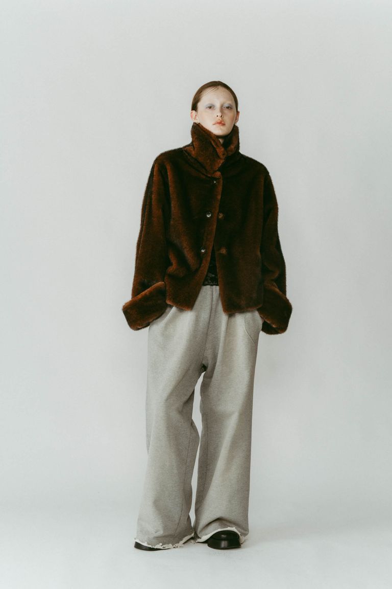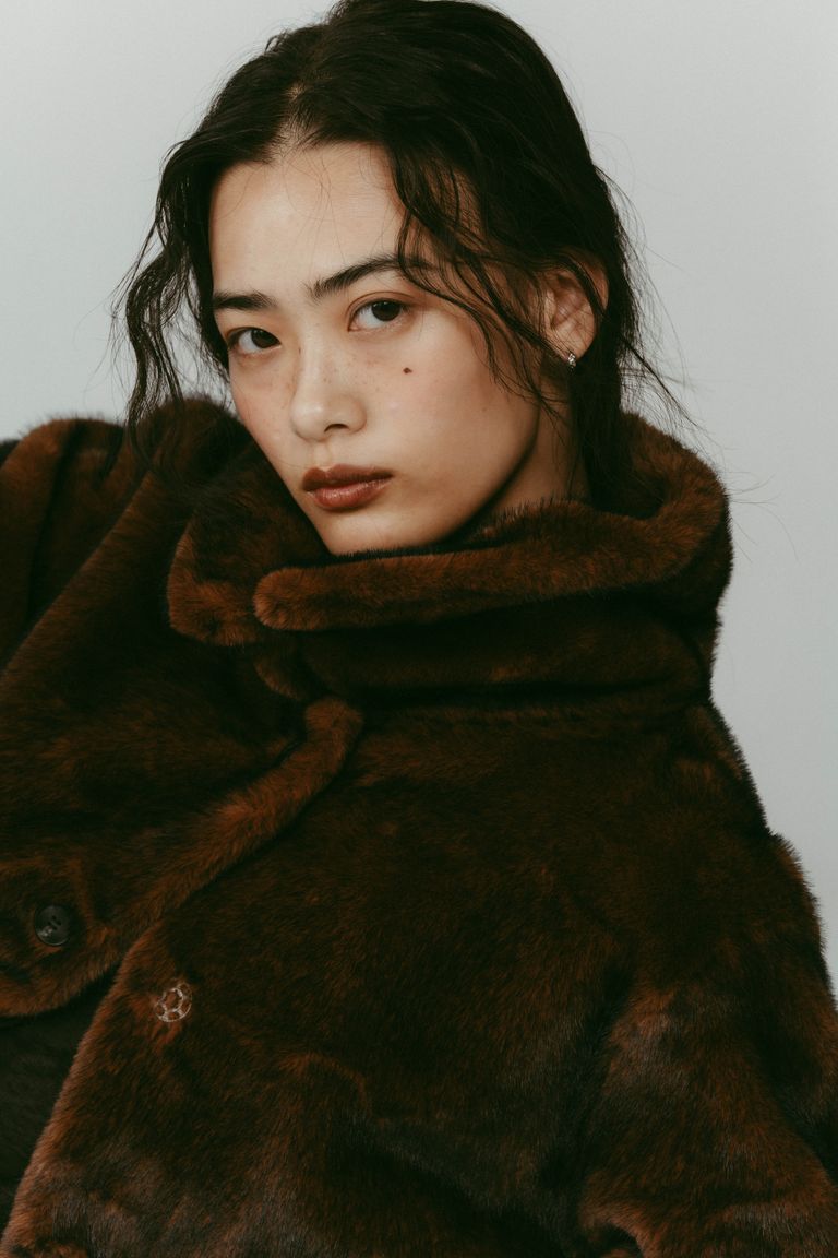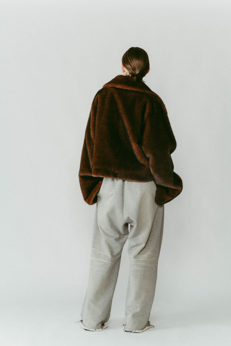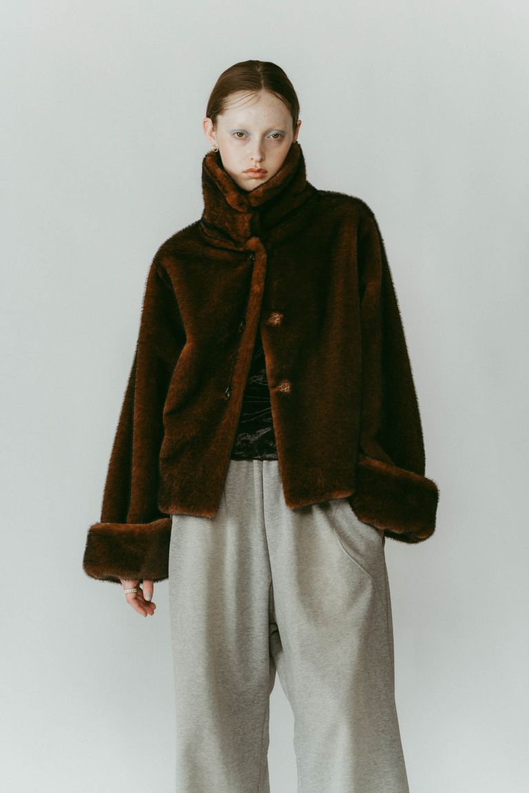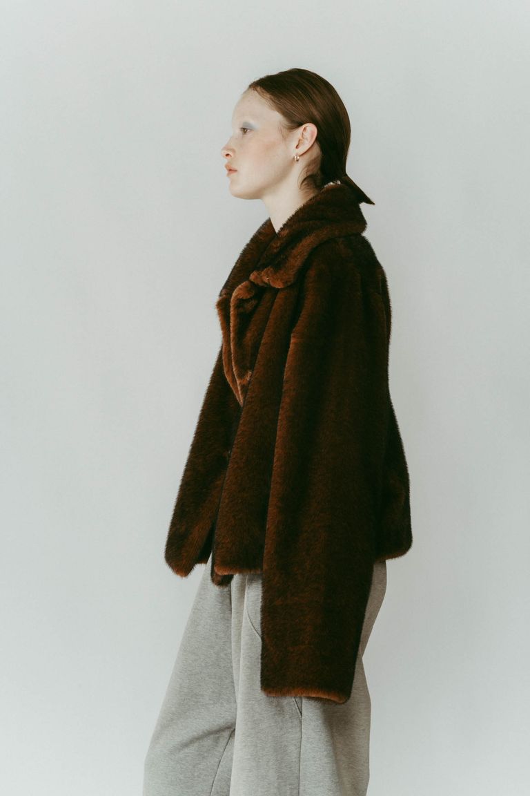 point collar fur coat / ポイントカラー ファーコートジャケット (ブラウン) / 25AW