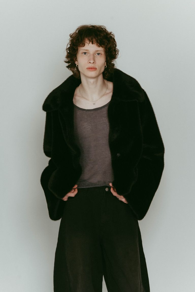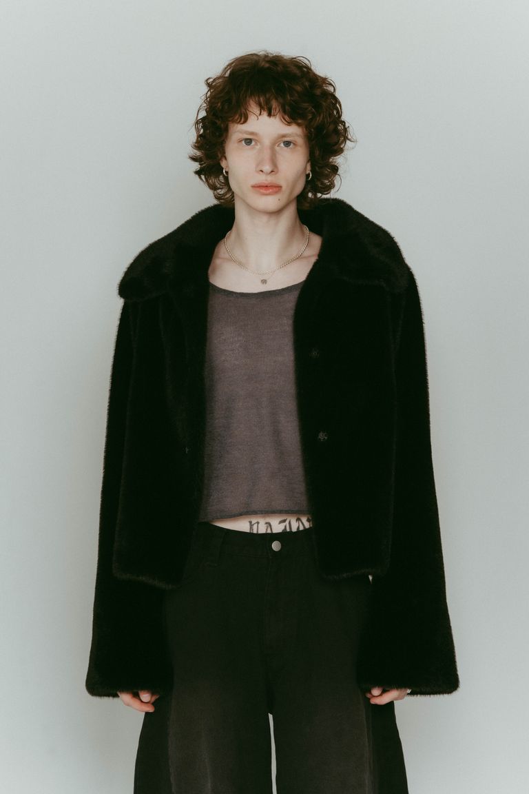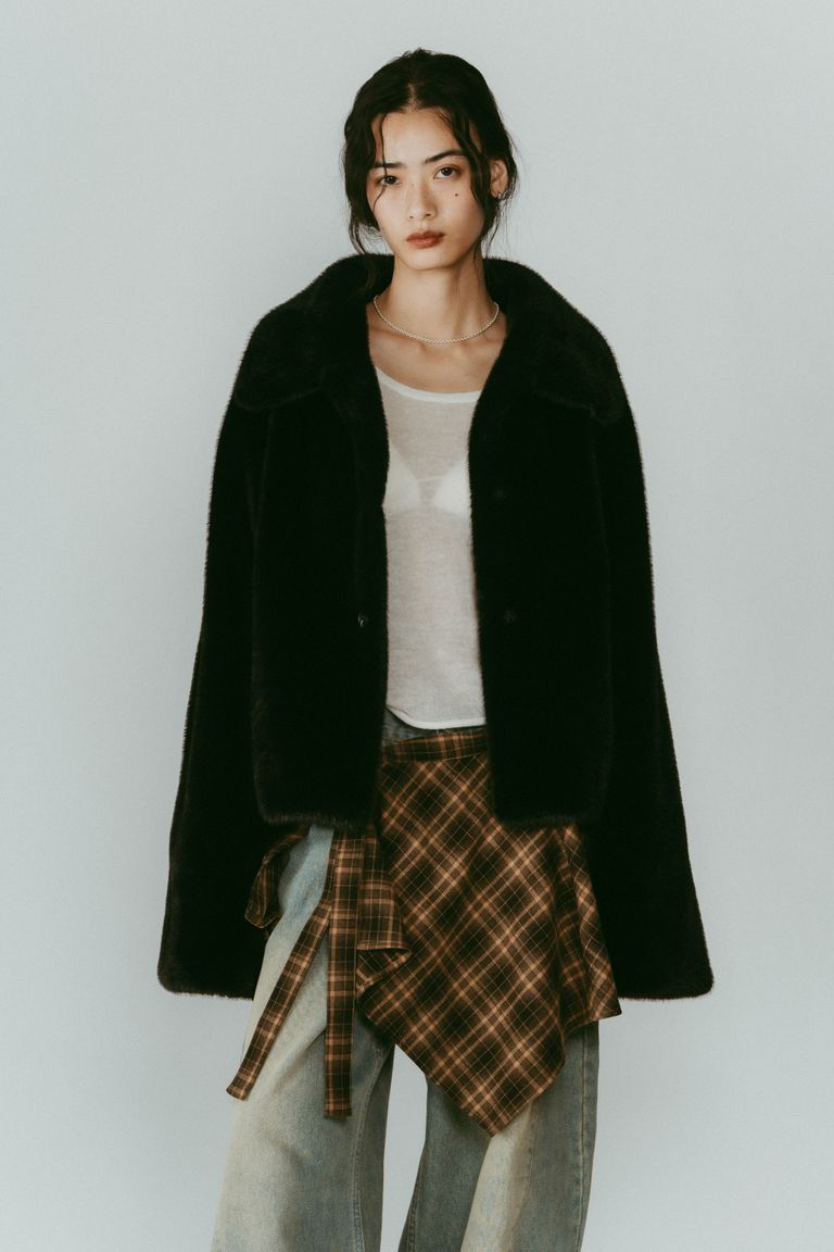 point collar fur coat / ポイントカラー ファーコートジャケット (ブラック) / 25AW
