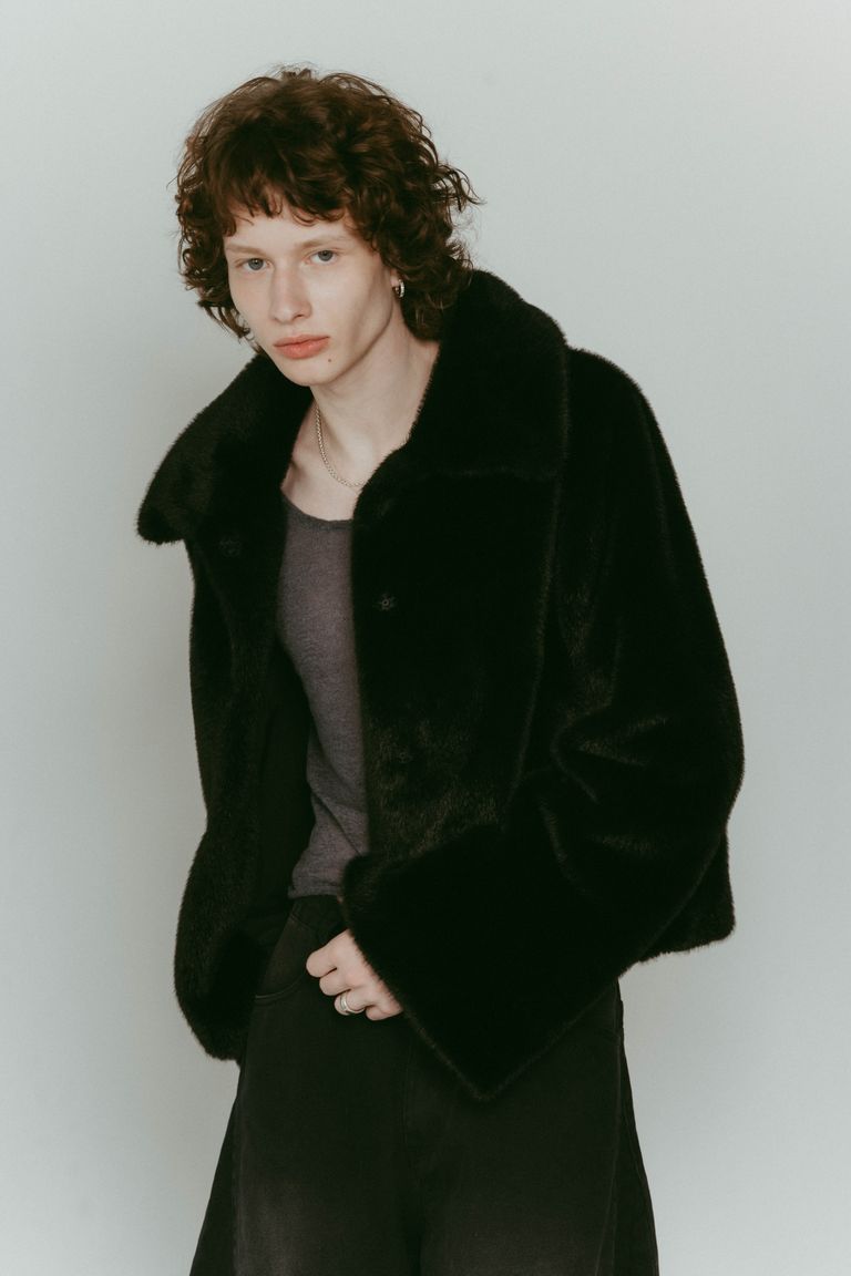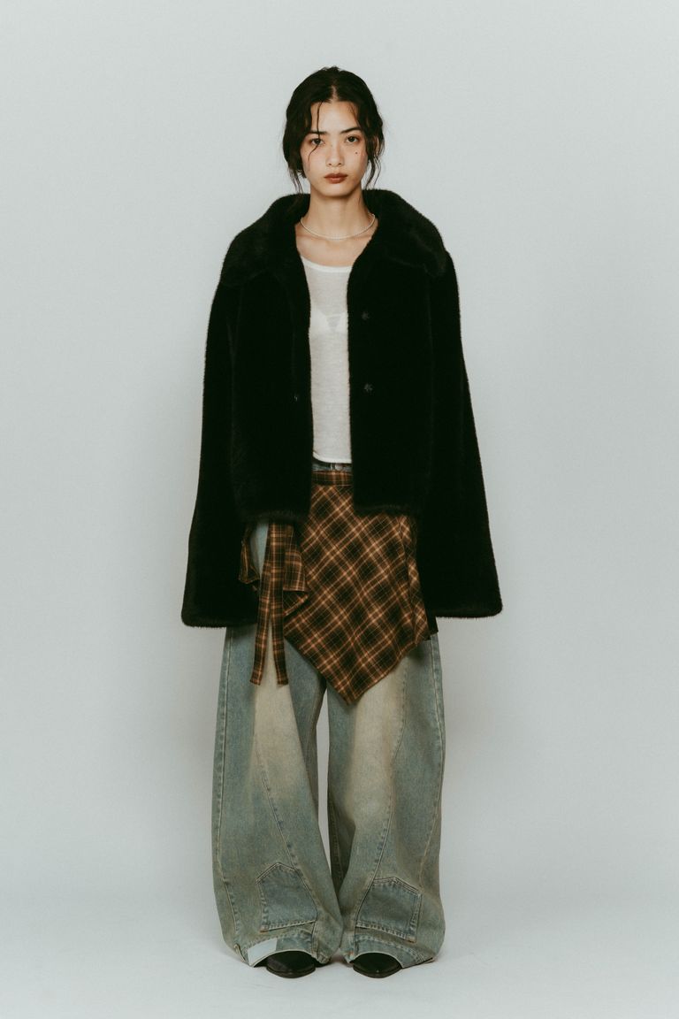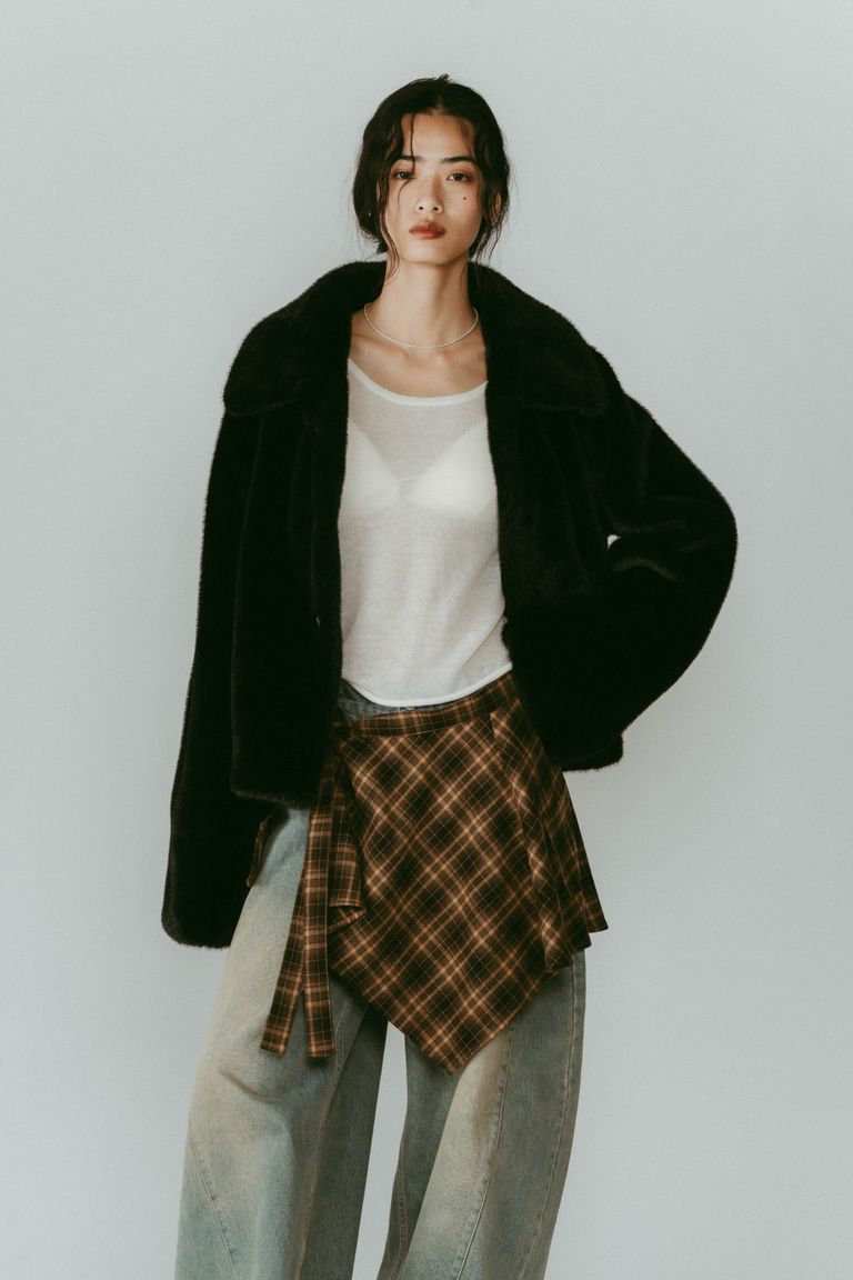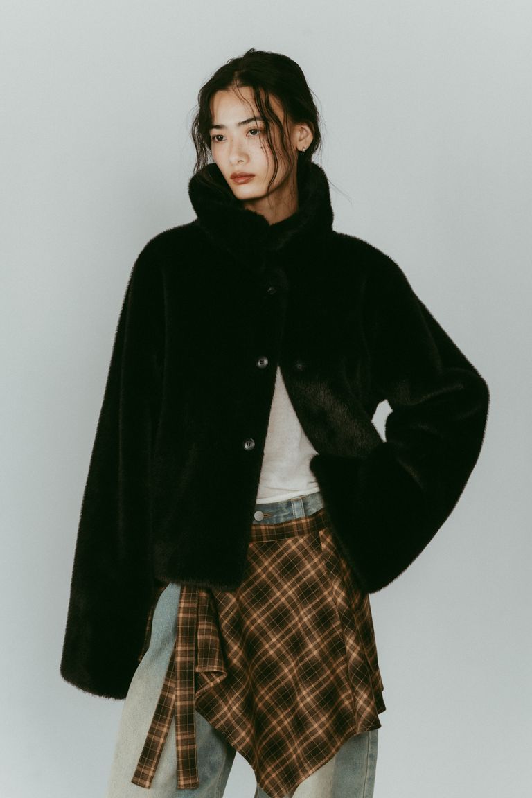 point collar fur coat / ポイントカラー ファーコートジャケット (ブラック) / 25AW