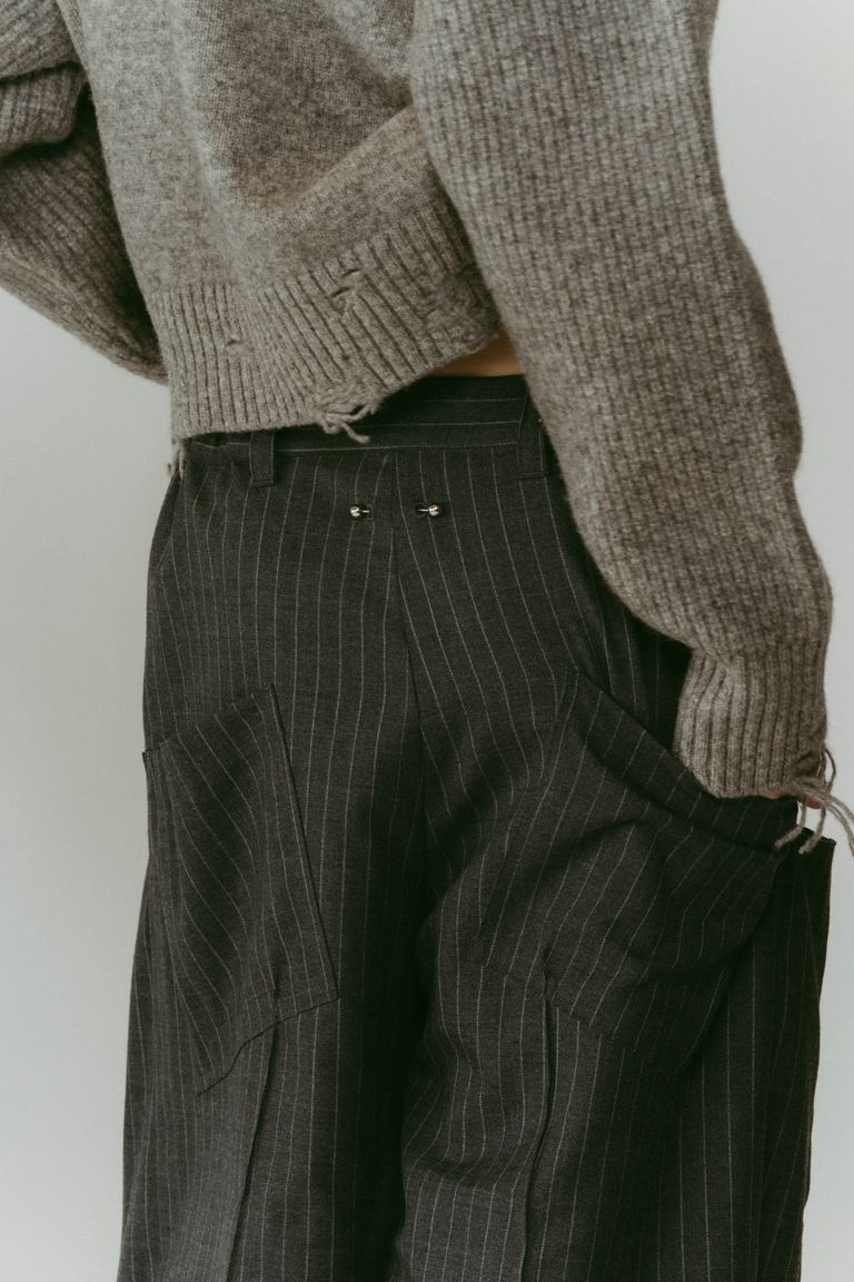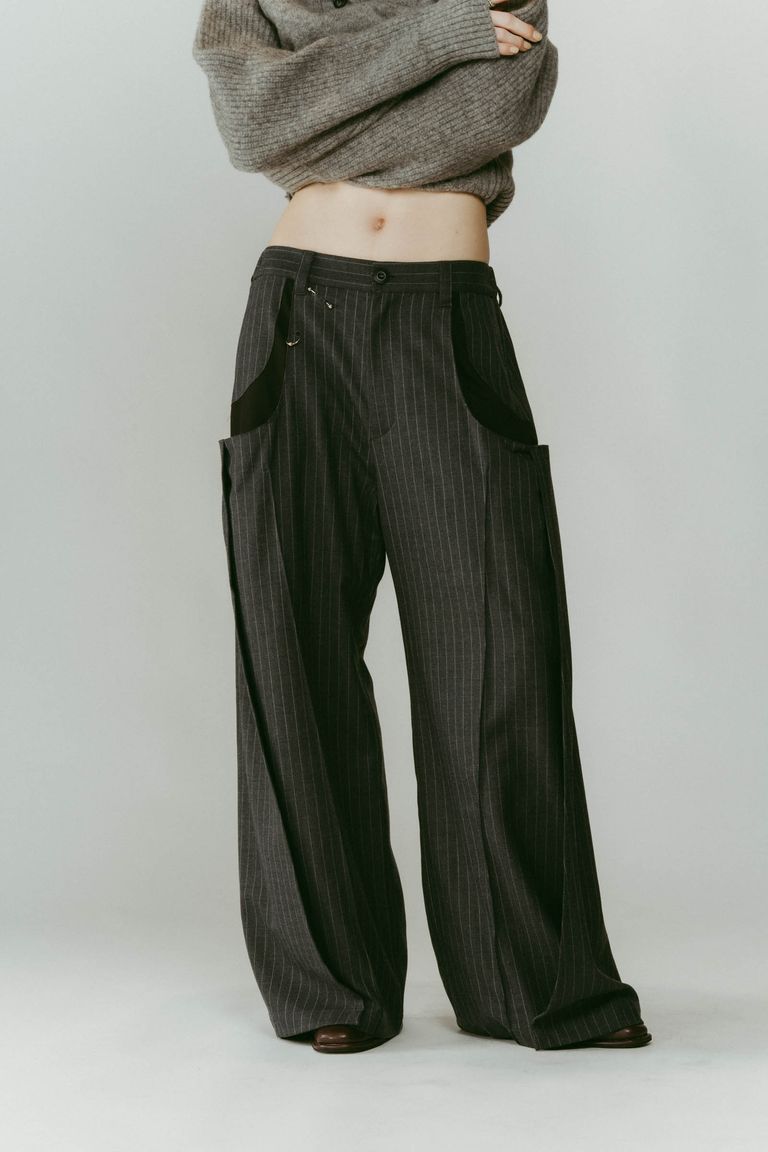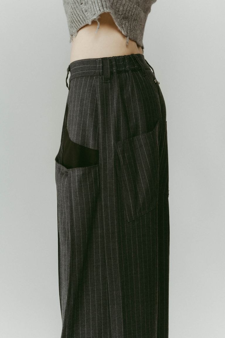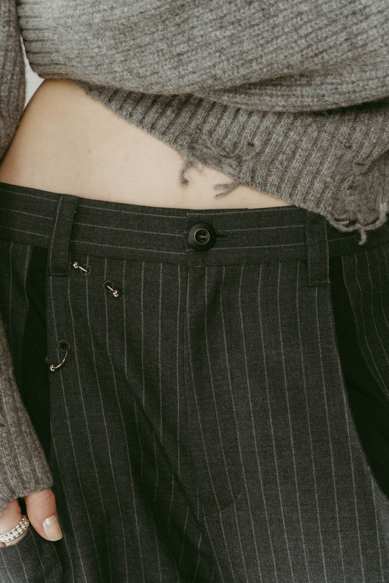 pierced drape pants(unisex) / ピアス ドレープ パンツ (ストライプグレー) / 25AW