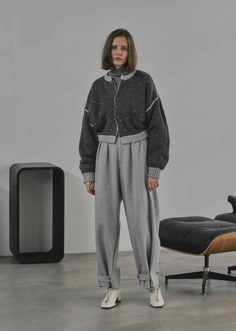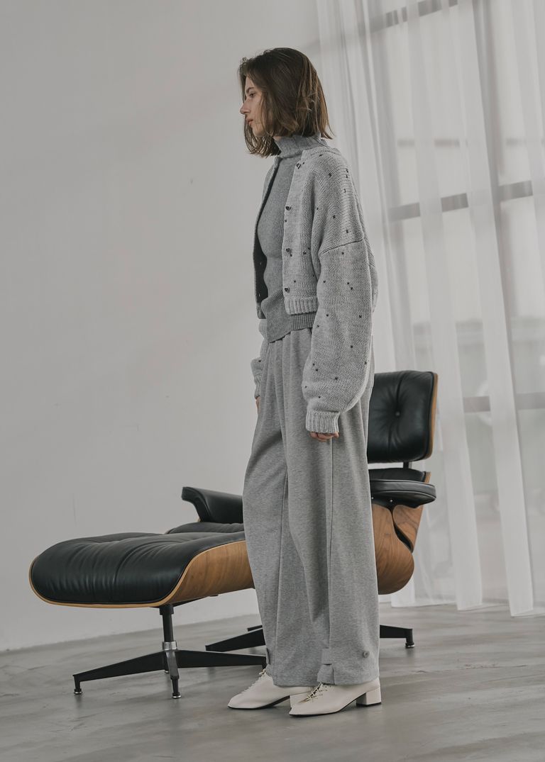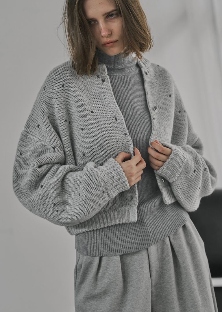 heart dot jacquard reversible cropped knit cardigan / ハートドット ジャガード リバーシブルクロップドカーディガン (グレー×チャコール) / 25AW