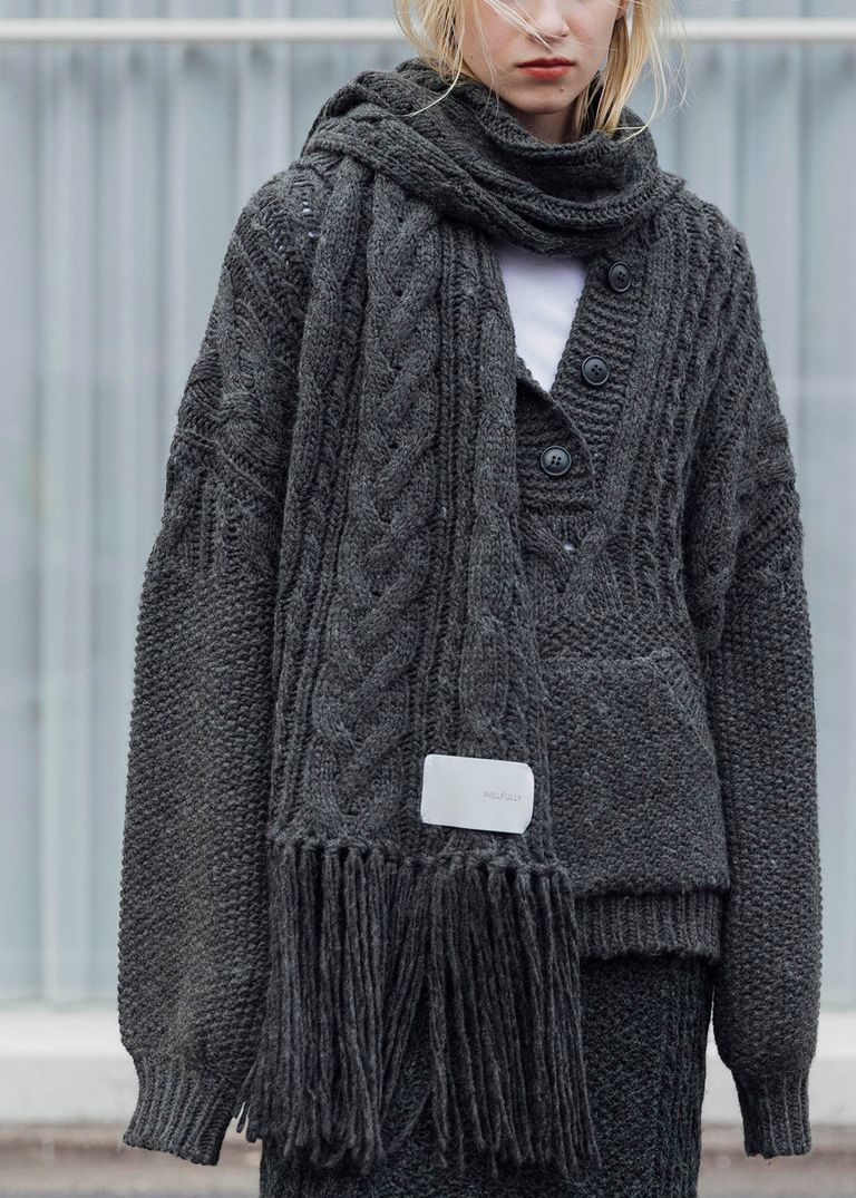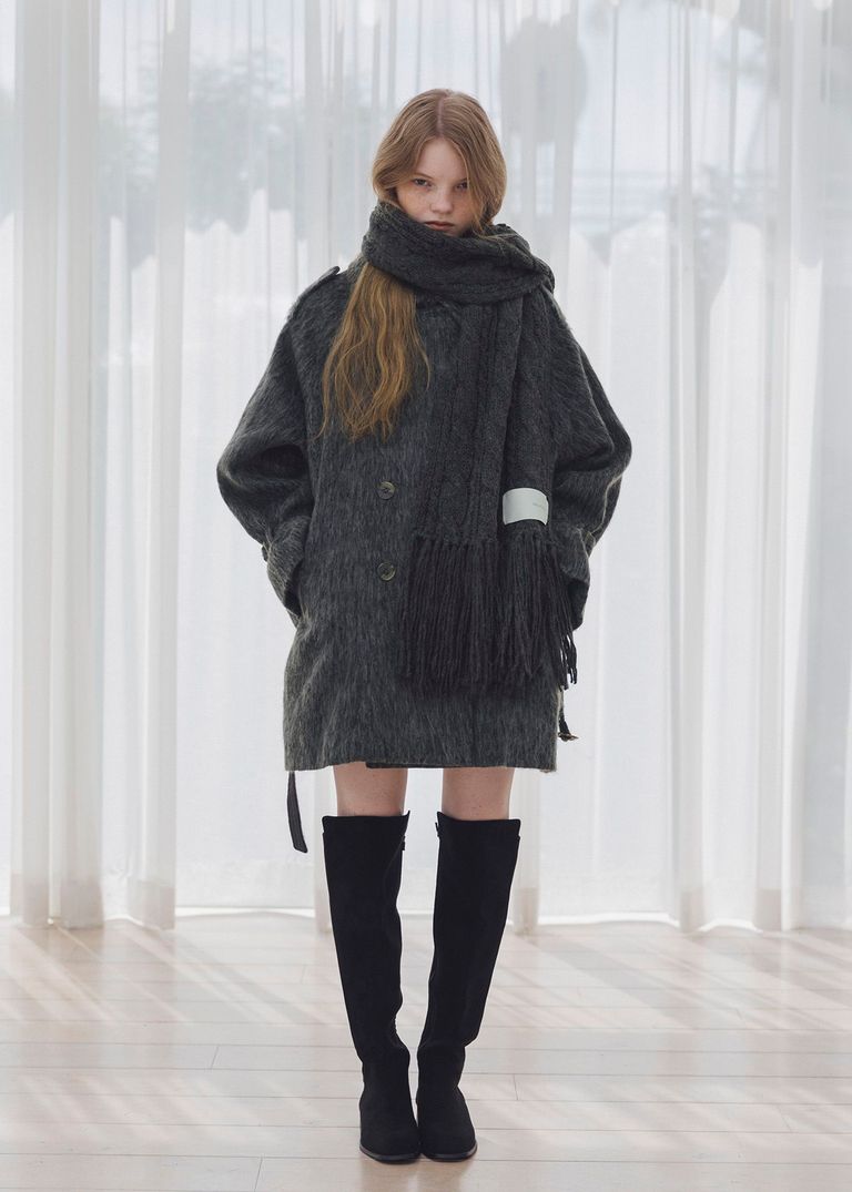 coarse knit cable fringe muffler / フリンジケーブルニットマフラー (チャコール) / 25AW