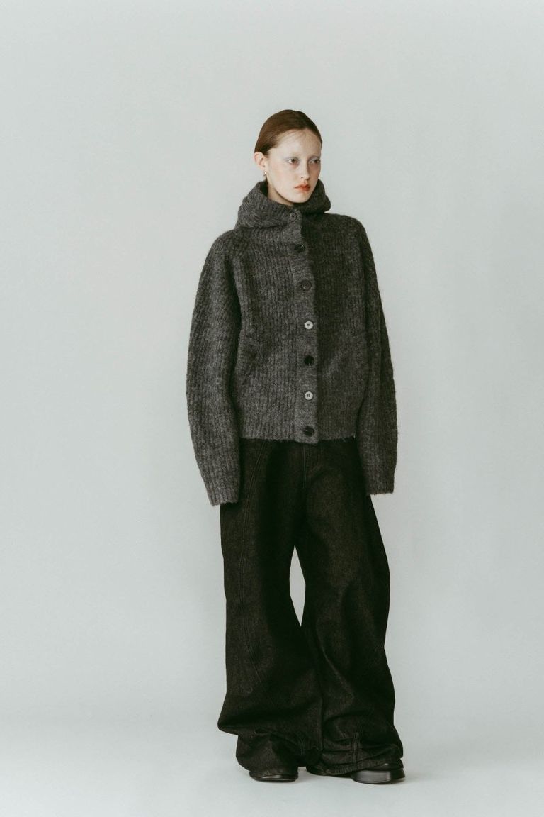 hooded cardigan knit / フーデッド カーディガンニット (グレー) / 25AW