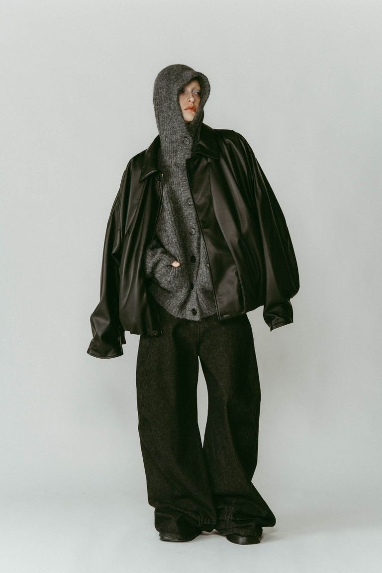 深めに被ると癖のある前衛的なシルエットに。