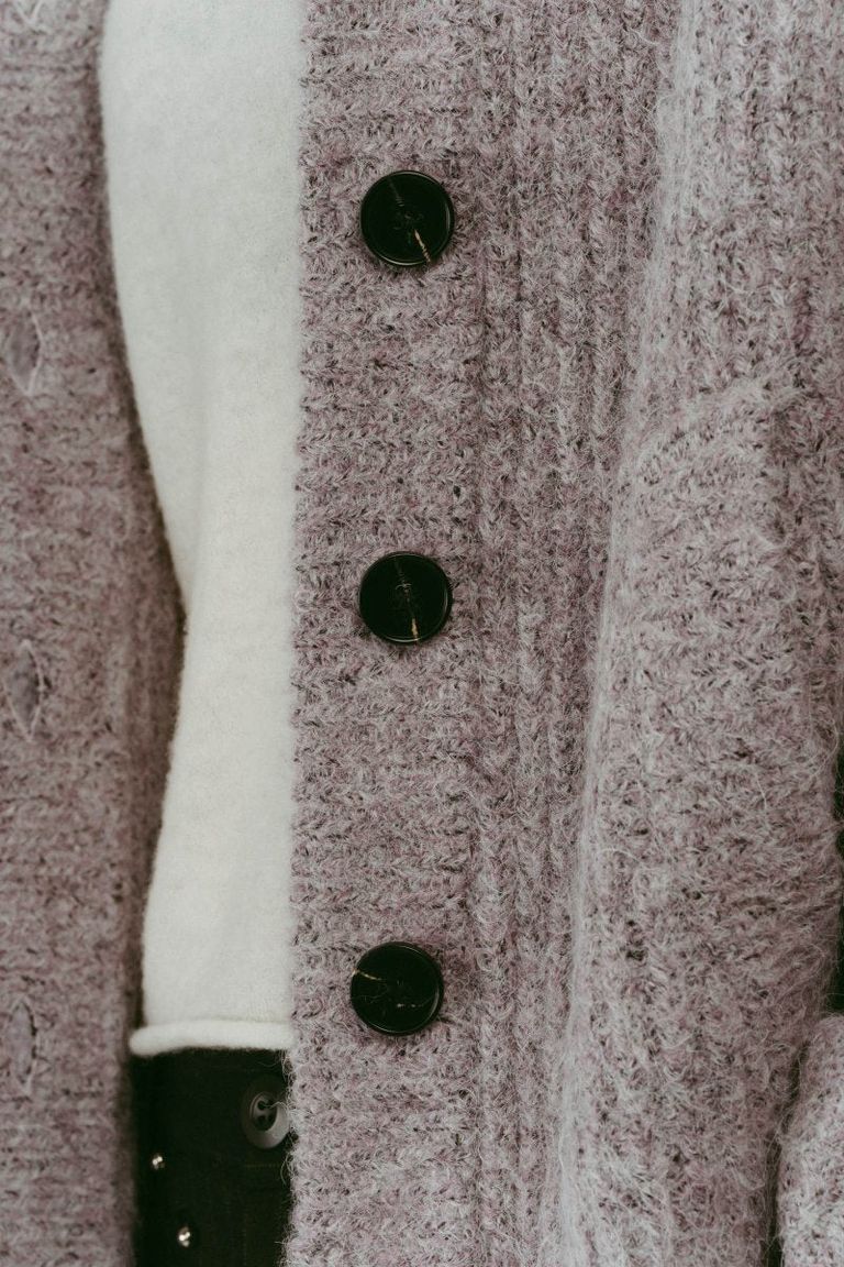 ふっくらとした編み地が印象的なフード付きカーディガンニット。