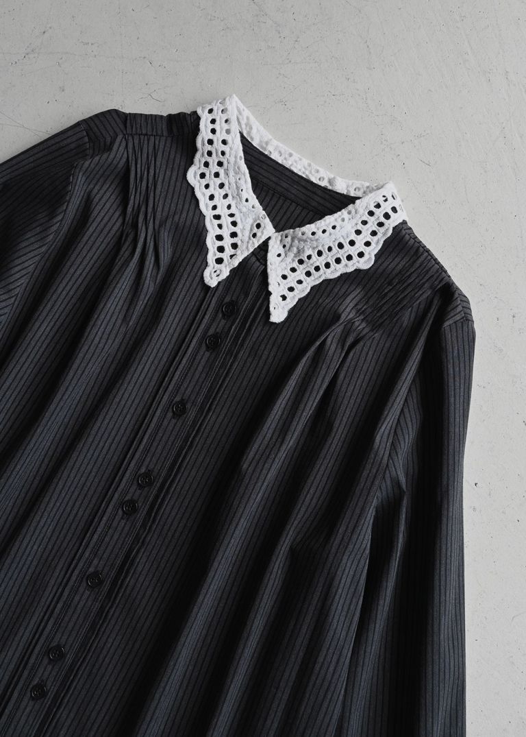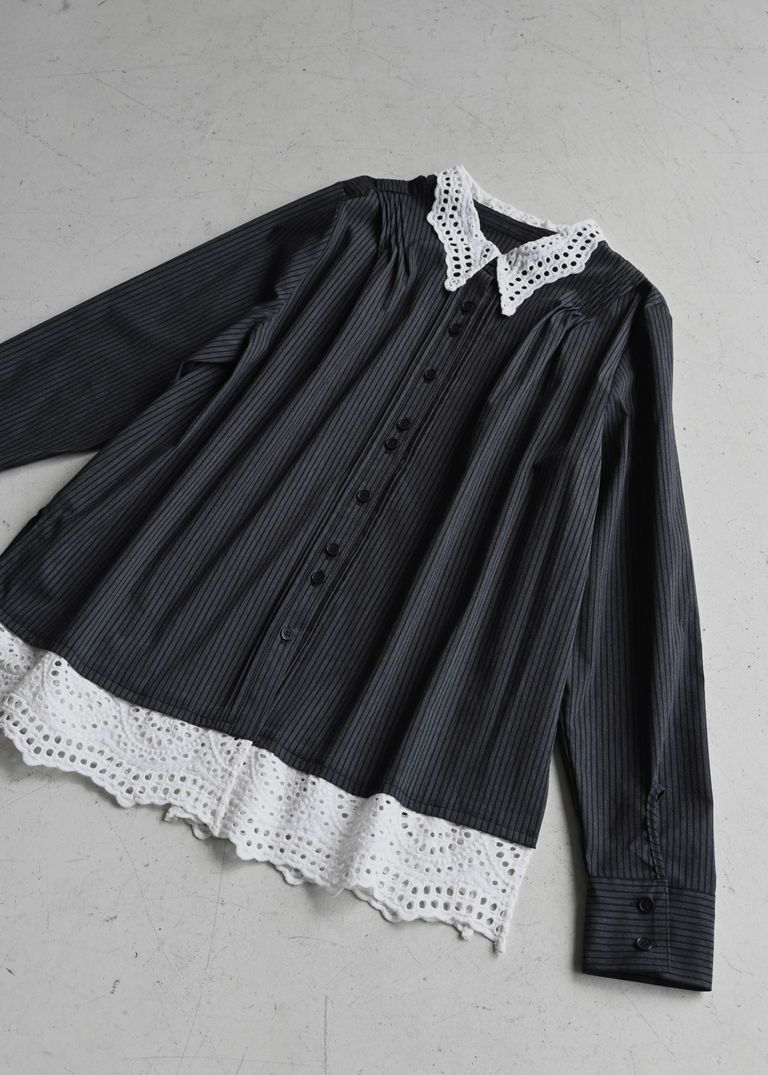 lace collar hem shoulder pintuck SH / レースヘムショルダー ピンタックシャツ (チャコール) / 25AW /