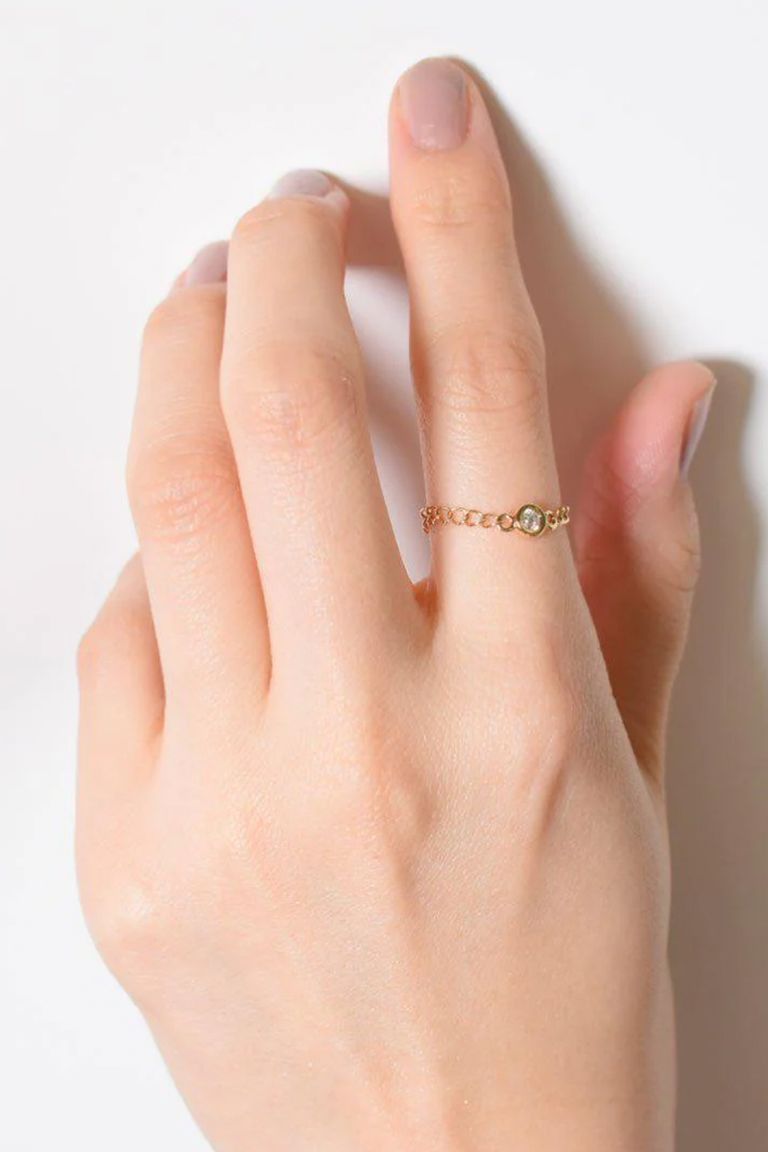 予約商品 在庫なし GYPPHY SINGLE MOISSANITE CHAIN RING / シングル モアサナイト チェーン リング K18 (ピンクゴールド) ¥29,700 税込 1,350 ポイント還元 注文 サイズ(採寸)情報 質問する お気に入り コーディネートリクエスト不可 チェーン幅 2mm モアサナイト 0.08ct トップ直径 3mm 商品説明 チェーンスタイルのリングと1粒モアサナイトが可愛らしさと遊び心を演出したデザイン。※装着例の商品はK18イエローゴールドです。※デザインの構造上通常のリングサイズより1サイズ大きめをお選びいただくことをおすすめしております。当店はGYPPHYの正規販売店です。株式会社GYPPHY様より納品されております。全ての商品に対し正規品であることを証明する「Guarantee card」が付属しています。修理の場合は当店までお問い合わせください。(ギャランティーカードは修理保証ではございませんので、初期不良以外は別途発生する場合が御座います。予めご了承下さいませ。) 【必ずお読みください】価格改定について GYPPHY商品は現在、原材料の高騰により価格改定が行われております。当店の価格表記は改訂前の場合もございますので、「受注生産商品」をご注文のお客様にはご注文後、改定後の価格をご案内し、改定後の金額にてご注文かキャンセルかをお聞きいたします。(3日以内にご返信がない場合は自動的にキャンセルとなります。)改定後の価格はGYPPHY公式サイトと同じとなります。https://gypphy-shop.com価格改定のない商品はそのままご注文内容通りに進行いたします。【即納】と商品名にある商品は価格改定対象外となります。ご不便をおかけし大変申し訳ございませんが、ご理解のほどよろしくお願いいたします。 「モアサナイト」とは ・輝きモアサナイトは光を強く分散する特性があり、その量はダイヤモンドの約2.5倍もあるため、よく”ダイヤモンドよりも2.5倍輝く宝石”なんて言われることもあります。またモアサナイトの光は綺麗な虹色に輝くのも特徴で、それも人気な要因の一つとなっております。・耐久性モアサナイトは炭化ケイ素(SiC)でできており、その元素構造上、衝撃への耐久性(靭性(じんせい))が非常に強く、ぶつけた時の欠けや割れがおきにくいです。また硬度は、ダイヤモンドに次ぐ硬さを誇り(9.25−9.5(ダイヤモンドは10))、表面への傷が限りなくつきにくい特徴もございます。さらに油を弾きやすい性質もあり、汚れに強くメンテナンスがしやすさも大きな特徴です。GYPPHYのモアサナイトには更に以下の特徴があります。・高品質GYPPHYのモアサナイトはその素材と同じ元素でできている半導体の材料を二次利用しております。半導体の性質上不純物などが含まれない、高純度な材料を使用することが必須なため、結果として高品質なモアサナイトを入手できております。・安心モアサナイトは中国やアメリカ産などが有名ですが、実はアメリカ産の中には原石を中国から仕入れて、それを国内でカッティングをし、アメリカ産と名乗るメーカーも非常に多いのです。それだと実際にどこから流れてきたモアサナイトなのかが追跡が不可能なため、責任を持ってお客様に提供ができないとGYPPHYは考えております。天然ダイヤモンドと偽ってモアサナイトを販売し、モアサナイトと偽ってジルコニアなどの人工宝石を販売する悪質な業者が増えている現在、私たちも安心して仕入れる事と、お客様に安心してご購入いただくために原石から作っている、しかも国がサポートをしている信頼のおける企業から直接購入をしております。・環境に優しいエシカル素材この業界で問題視されているような児童労働や紛争資源に関わらないことはもちろん、合成宝石を造るには四六時中電気を使用する必要があるのですが、GYPPHYのモアサナイトは半導体企業で使用されるモアサナイトと同じ元素でできた素材を二次利用しているため、モアサナイトを造るためだけに電気エネルギーを大量に使用することはありません。なるべく二酸化炭素を排出しないよう心掛けております。 素材について(K18) ■K1875%が金でできており耐久性が非常に高く、シーンを選ばず使用ができる。・着用シーン水/お風呂/汗→◎アルコール→◎化粧水/クリーム等→◎温泉→◯海→◎※全て金属アレルギーの要因に多いニッケルは含まれておりません。 受注生産に関する注意事項(必ずお読みください) ※ご注文後、ご入金を頂いてからの製作となります。※ご注文時期によっては、納期目安よりもお時間がかかる場合があります。※クレジットカードの決済日は、原則ご注文の当日となります。※受注生産品は廃番により、ご用意出来ない場合が御座います。※生産上の都合により減産・生産中止となった場合は、全額返金いたします。※ご注文確定後のキャンセル、ご注文内容の変更、返品は行えません。※商品画像はサンプルのため、実際の製品とは色味、サイズ、仕様等が若干異なる場合がございます。※受注生産品は予めお支払いを頂いております。代金引換