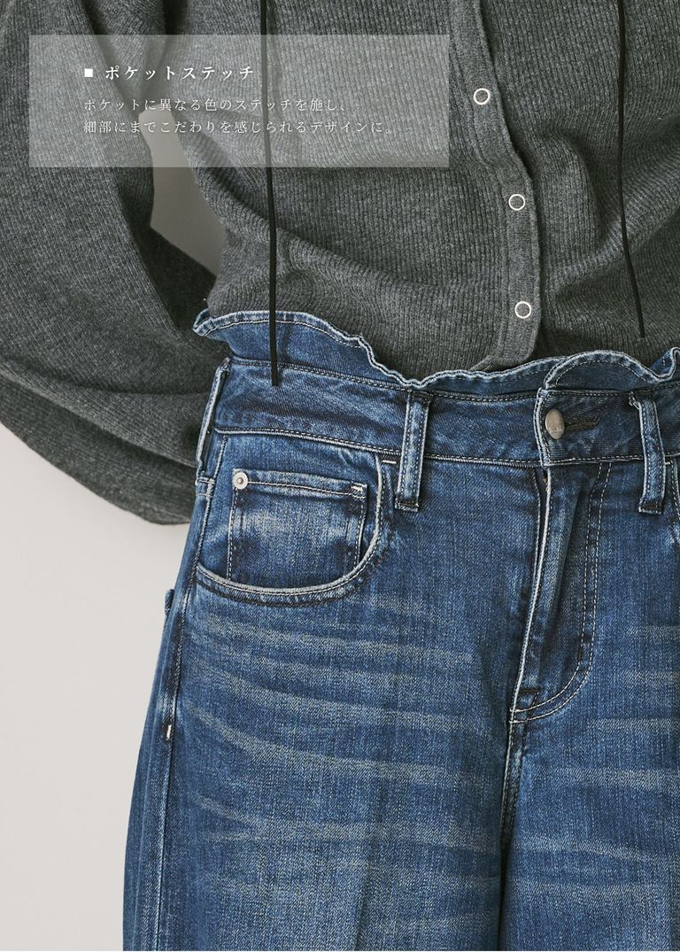 【Healthy DENIM × WILLFULLY】"Harmonia" waist frill wide denim PT / ヘルシーデニムコラボ フリルワイドデニムパンツ (ブルー) / 25AW /