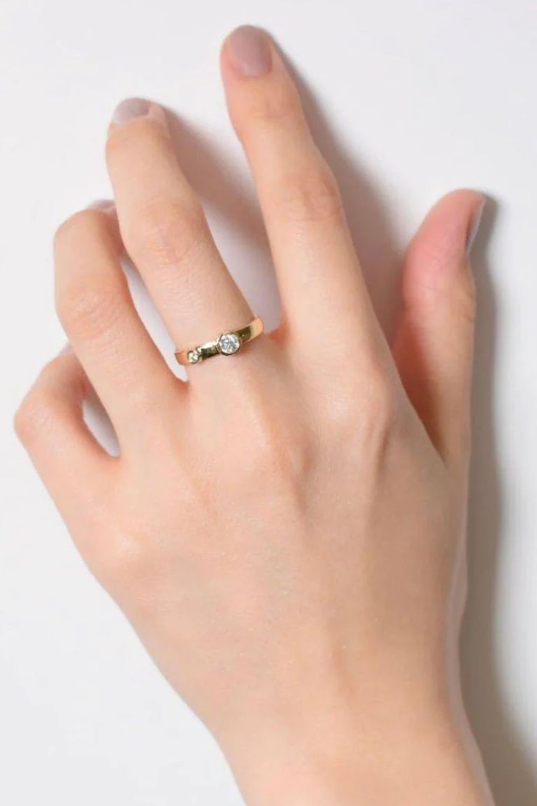 予約商品 在庫なし GYPPHY TWIN STONE RING / ツイン ストーン リング K9/K18 (ホワイトゴールド) ¥55,000 ~ 99,000 税込 2,500 ~ 4,500 ポイント還元 注文 サイズ(採寸)情報 質問する お気に入り コーディネートリクエスト不可 サイズ リング幅 2.5mm モアサナイト大 (4mm) 0.16ct ×1 モアサナイト小 (2mm) 0.03ct ×1 合計 0.19ct 商品説明 大小サイズの異なる2つのモアサナイトが輝くリング。華奢すぎなく、手元にボリューム感を与えてくれるデザイン。 少し個性的なアクセサリーをお求めの方にオススメ。ご自身の肌に馴染むカラーを選んで、指をすっとキレイに見せましょう。※装着例の商品はK18イエローゴールドです。当店はGYPPHYの正規販売店です。株式会社GYPPHY様より納品されております。全ての商品に対し正規品であることを証明する「Guarantee card」が付属しています。修理の場合は当店までお問い合わせください。(ギャランティーカードは修理保証ではございませんので、初期不良以外は別途発生する場合が御座います。予めご了承下さいませ。) 【必ずお読みください】価格改定について GYPPHY商品は現在、原材料の高騰により価格改定が行われております。当店の価格表記は改訂前の場合もございますので、「受注生産商品」をご注文のお客様にはご注文後、改定後の価格をご案内し、改定後の金額にてご注文かキャンセルかをお聞きいたします。(3日以内にご返信がない場合は自動的にキャンセルとなります。)改定後の価格はGYPPHY公式サイトと同じとなります。https://gypphy-shop.com価格改定のない商品はそのままご注文内容通りに進行いたします。【即納】と商品名にある商品は価格改定対象外となります。ご不便をおかけし大変申し訳ございませんが、ご理解のほどよろしくお願いいたします。 「モアサナイト」とは ・輝きモアサナイトは光を強く分散する特性があり、その量はダイヤモンドの約2.5倍もあるため、よく”ダイヤモンドよりも2.5倍輝く宝石”なんて言われることもあります。またモアサナイトの光は綺麗な虹色に輝くのも特徴で、それも人気な要因の一つとなっております。・耐久性モアサナイトは炭化ケイ素(SiC)でできており、その元素構造上、衝撃への耐久性(靭性(じんせい))が非常に強く、ぶつけた時の欠けや割れがおきにくいです。また硬度は、ダイヤモンドに次ぐ硬さを誇り(9.25−9.5(ダイヤモンドは10))、表面への傷が限りなくつきにくい特徴もございます。さらに油を弾きやすい性質もあり、汚れに強くメンテナンスがしやすさも大きな特徴です。GYPPHYのモアサナイトには更に以下の特徴があります。・高品質GYPPHYのモアサナイトはその素材と同じ元素でできている半導体の材料を二次利用しております。半導体の性質上不純物などが含まれない、高純度な材料を使用することが必須なため、結果として高品質なモアサナイトを入手できております。・安心モアサナイトは中国やアメリカ産などが有名ですが、実はアメリカ産の中には原石を中国から仕入れて、それを国内でカッティングをし、アメリカ産と名乗るメーカーも非常に多いのです。それだと実際にどこから流れてきたモアサナイトなのかが追跡が不可能なため、責任を持ってお客様に提供ができないとGYPPHYは考えております。天然ダイヤモンドと偽ってモアサナイトを販売し、モアサナイトと偽ってジルコニアなどの人工宝石を販売する悪質な業者が増えている現在、私たちも安心して仕入れる事と、お客様に安心してご購入いただくために原石から作っている、しかも国がサポートをしている信頼のおける企業から直接購入をしております。・環境に優しいエシカル素材この業界で問題視されているような児童労働や紛争資源に関わらないことはもちろん、合成宝石を造るには四六時中電気を使用する必要があるのですが、GYPPHYのモアサナイトは半導体企業で使用されるモアサナイトと同じ元素でできた素材を二次利用しているため、モアサナイトを造るためだけに電気エネルギーを大量に使用することはありません。なるべく二酸化炭素を排出しないよう心掛けております。 素材について(K9/K18) ■K9約37.5%が金でできている。日常使いとしては十分な耐久性を持つ。※K18と色味を合わせるために最終工程にてK18のコーティングを施しております。・着用シーン水/お風呂/汗→◎アルコール→◎化粧水/クリーム等→△付着した場合は拭き取るなどのケアが必須。温泉→×硫黄成分に弱いです。海→◯■K1875%が金でできており耐久性が非常に高く、シーンを選ばず使用ができる。・着用シーン水/お風呂/汗→◎アルコール→◎化粧水/クリーム等→◎温泉→◯海→◎※全て金属アレルギーの要因に多いニッケルは含まれておりません。 受注生産に関する注意事項(必ずお読みください) ※ご注文後、ご入金を頂いてからの製作となります。※ご注文時期によっては、納期目安よりもお時間がかかる場合があります。※クレジットカードの決済日は、原則ご注文の当日となり