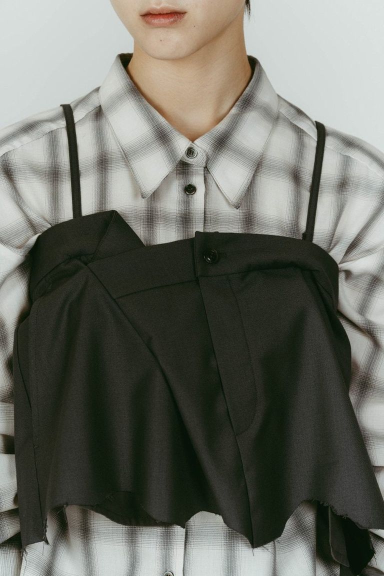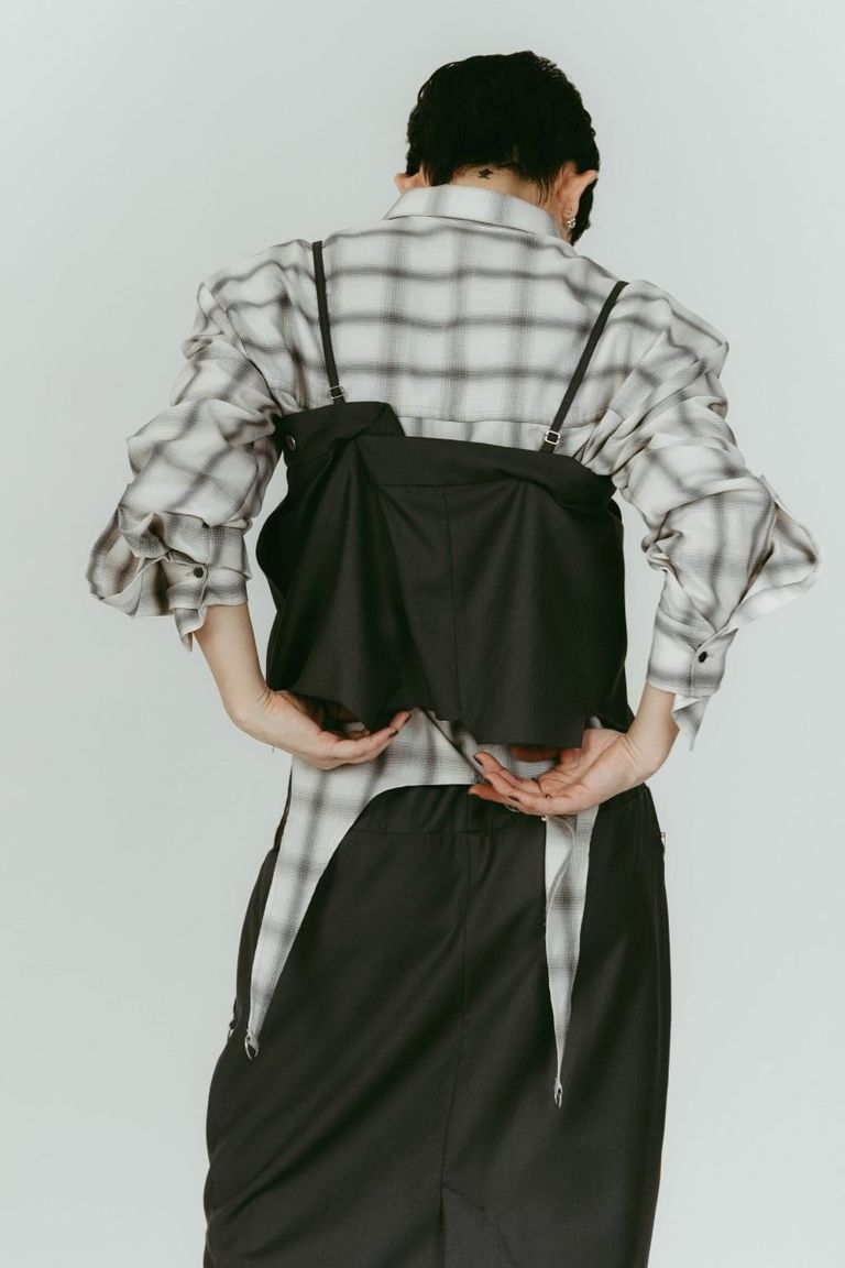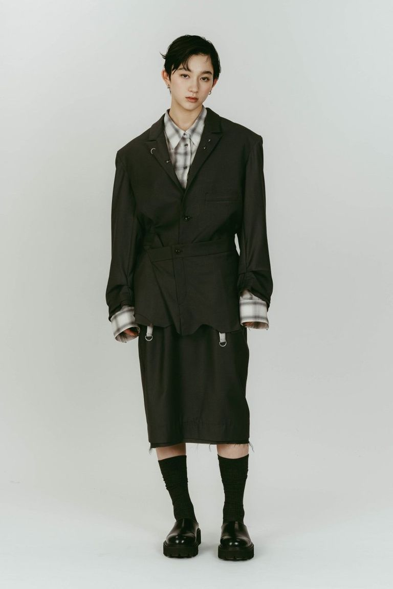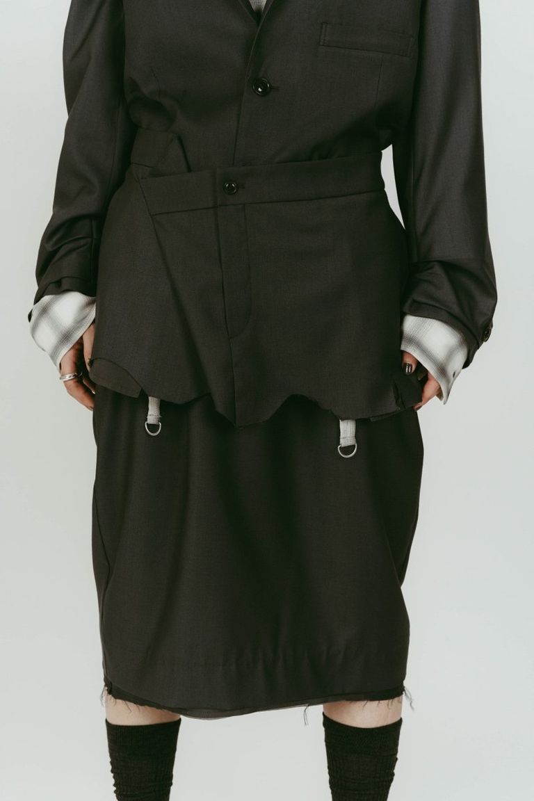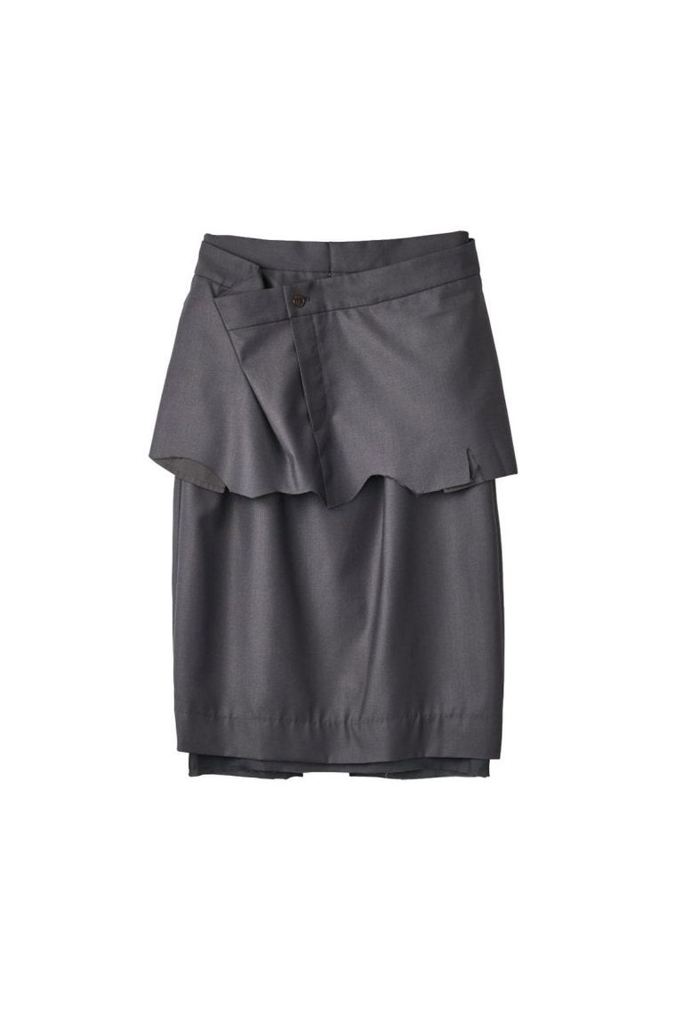 cut layered mid length skirt (Gray) / レイヤード ミディアム丈スカート (グレー) / 26SS