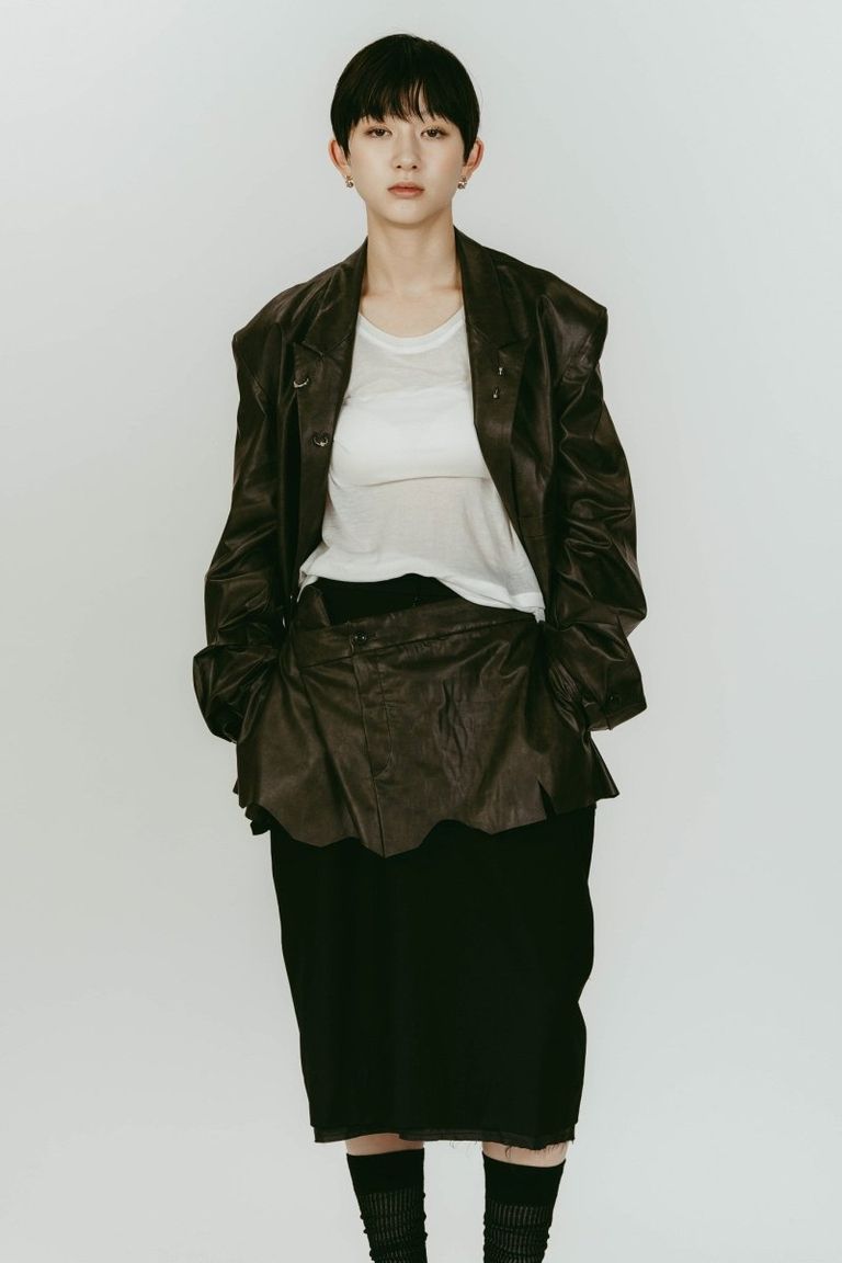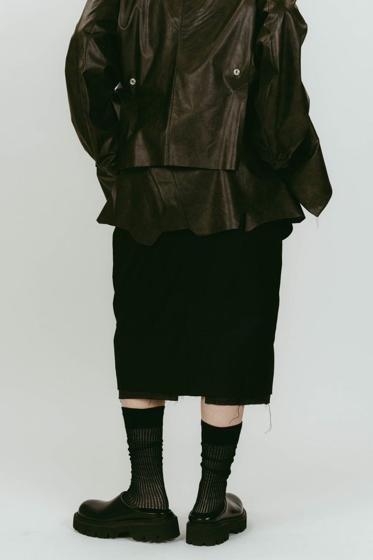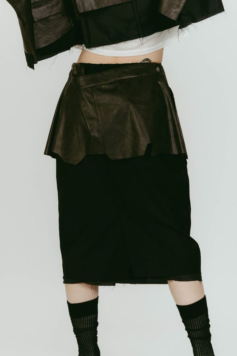 cut layered mid length skirt (Leatherblack) / レイヤード ミディアム丈スカート (レザーブラック) / 26SS