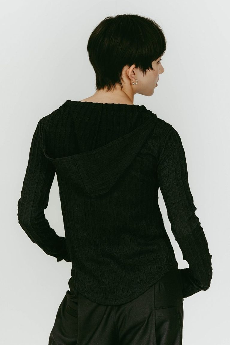hooded jacquard top (Black) / ジャガード フーディトップス (ブラック) / 26SS