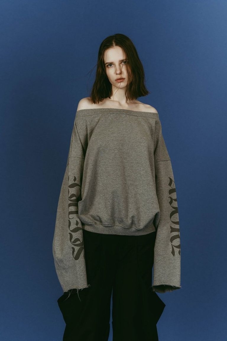 off shoulder vintage sweat (Gray) / オフショルダー ヴィンテージスウェット (グレー) / 26SS