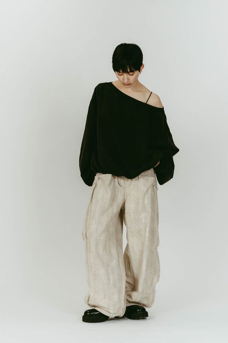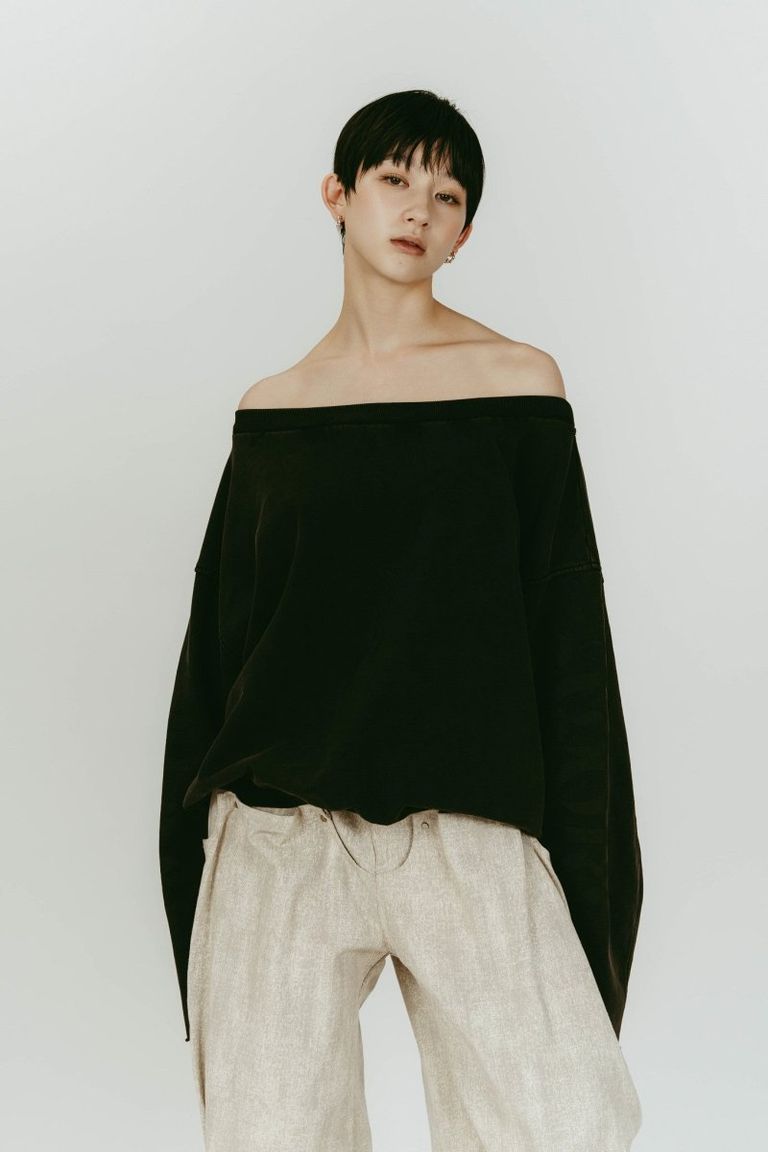 off shoulder vintage sweat (Black) / オフショルダー ヴィンテージスウェット (ブラック) / 26SS
