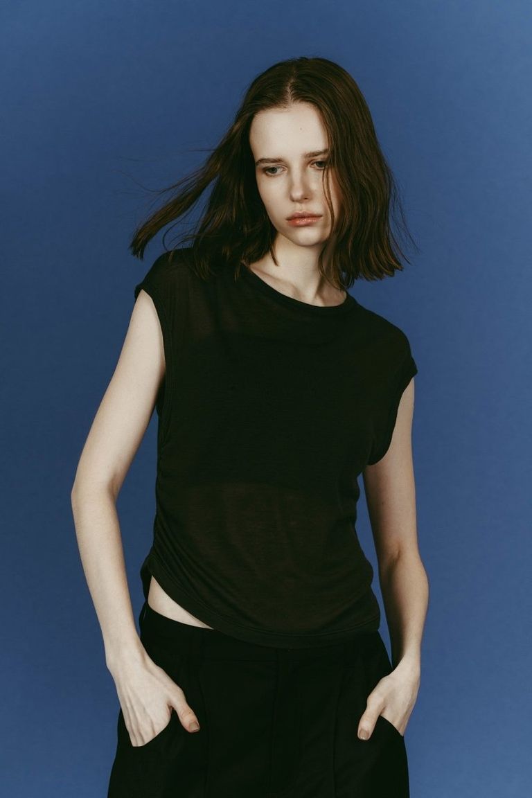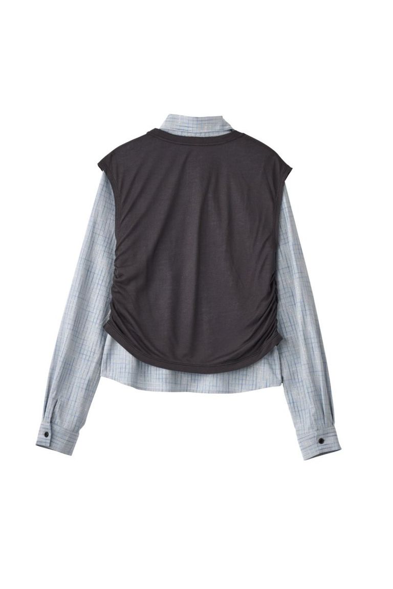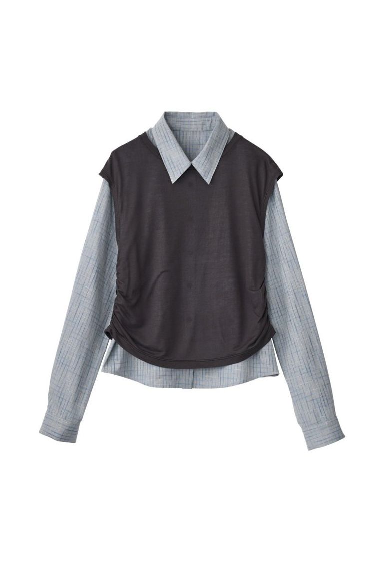 2-piece layered compact shirt (BlueChacoal) / 2ピース レイヤードコンパクトシャツ (ブルーチャコール) / 26SS