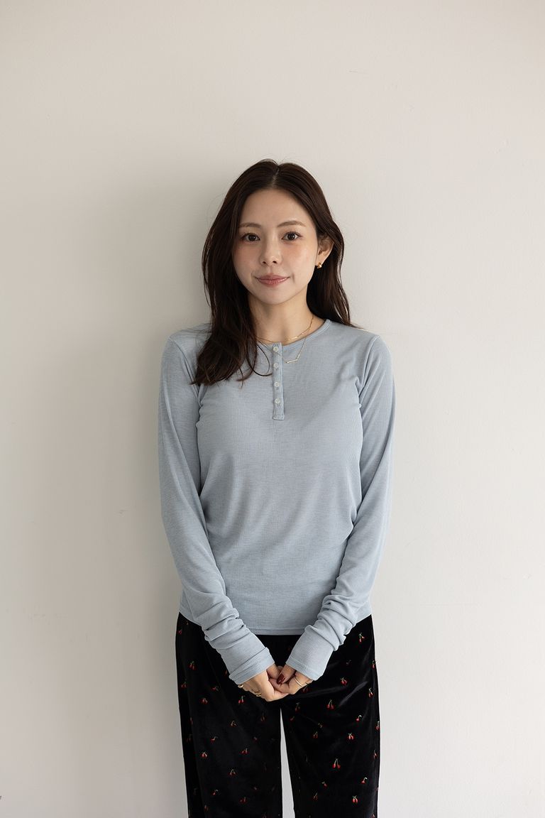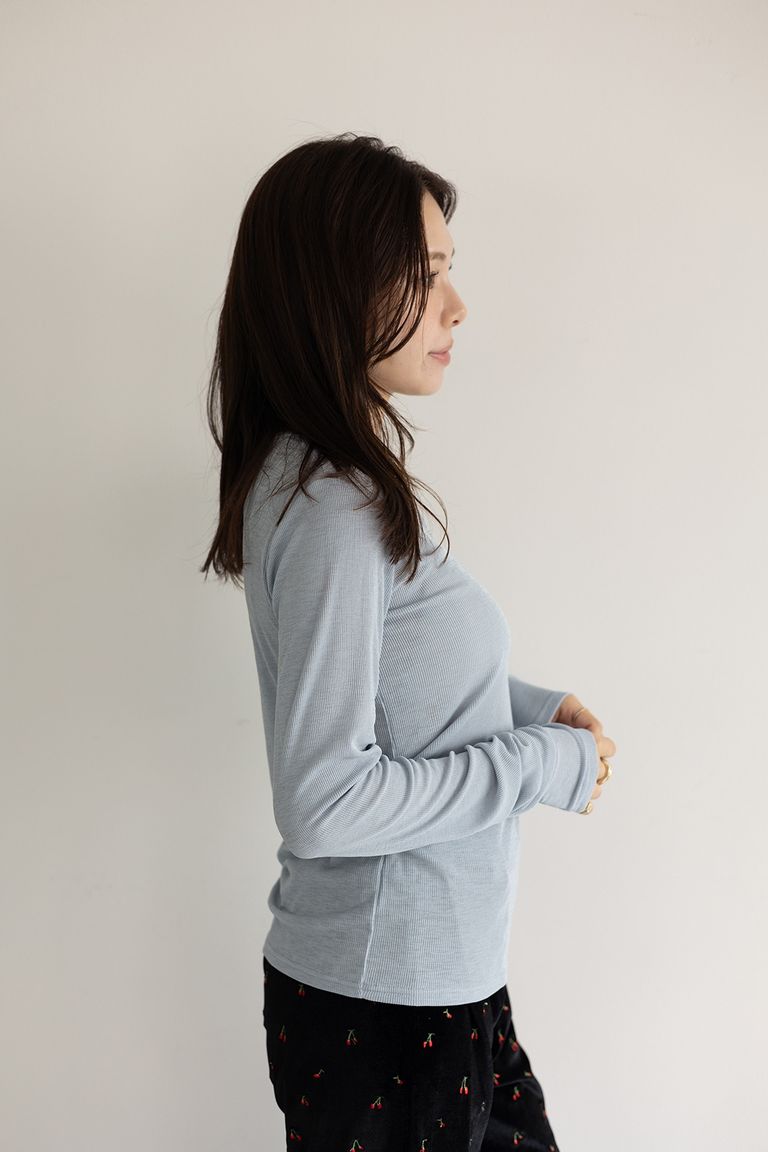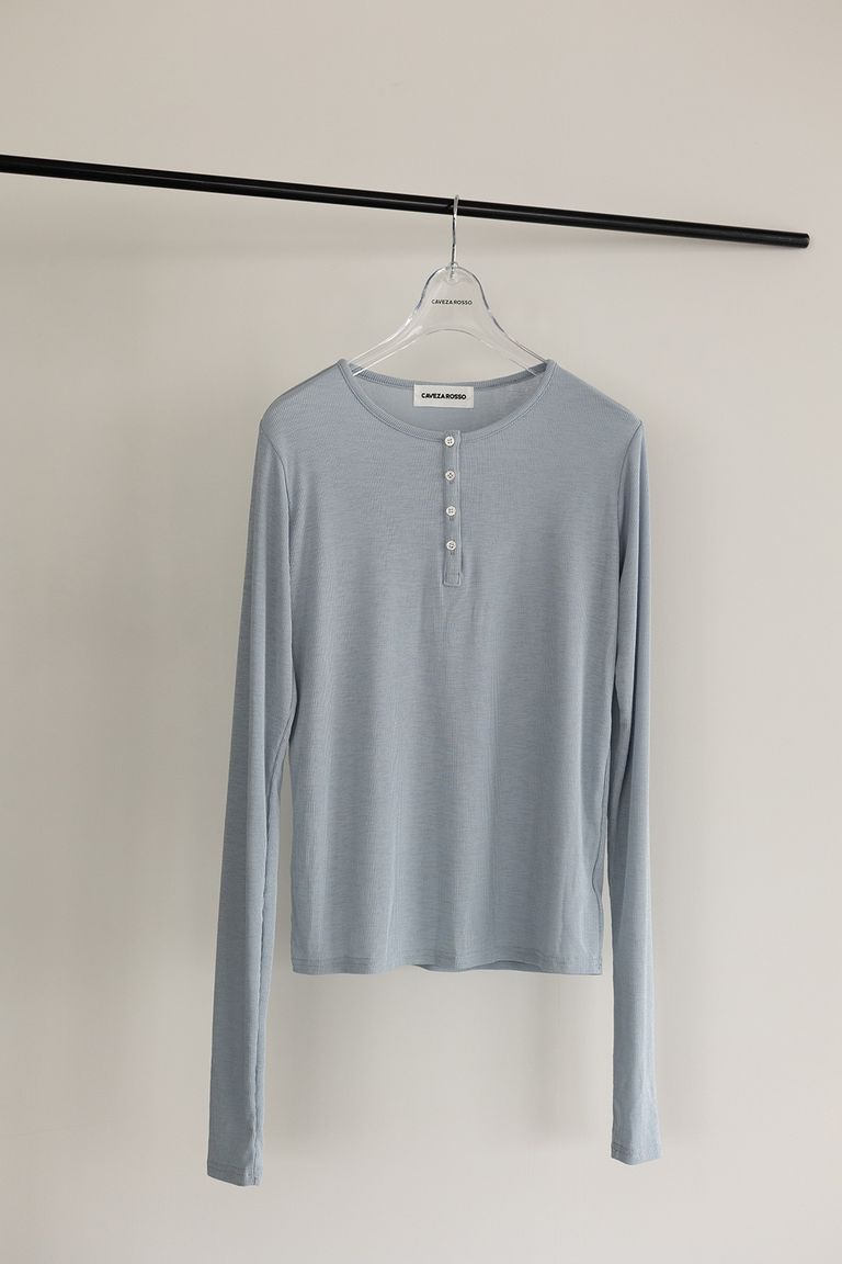 ヘンリーネックリブカットソートップス (スカイブルー) Henley neck top (SkyBkue) / 26SS