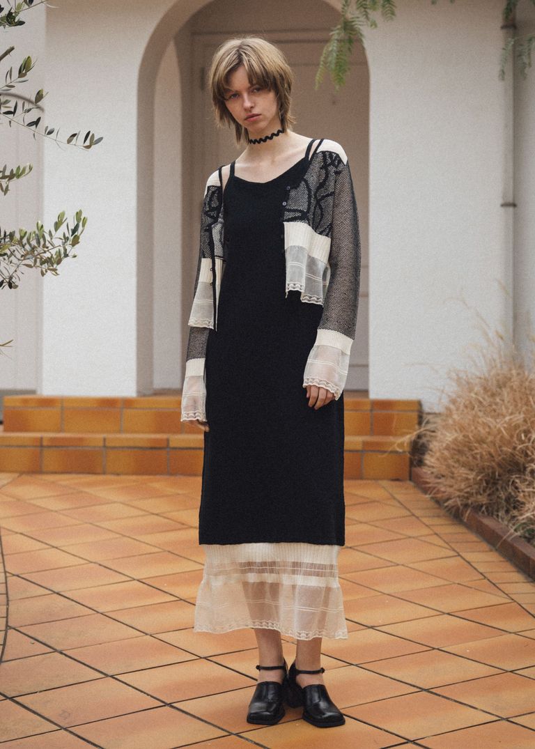 ジャガードパターン シアーカーディガン (ブラック) jacquard pattern sheer knit cardigan (Black) / 26SS