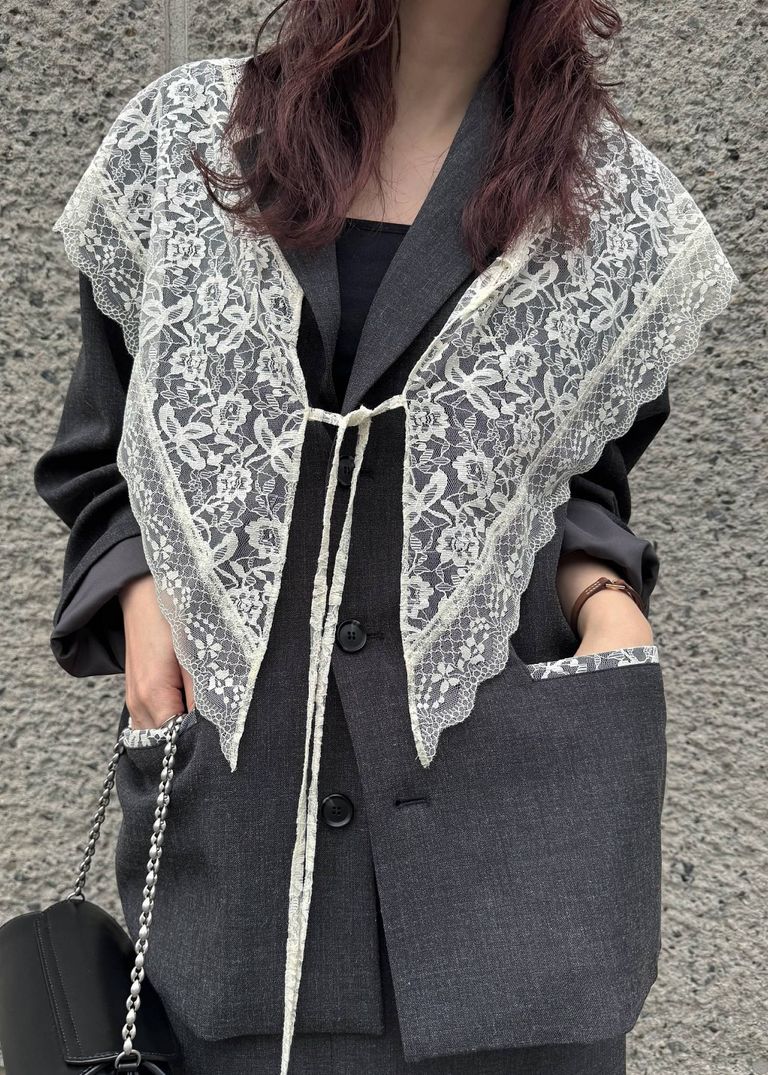 アレンジレース ジャケット (ブラック) arrangement lace shawl oversize JK (Black) / 26SS