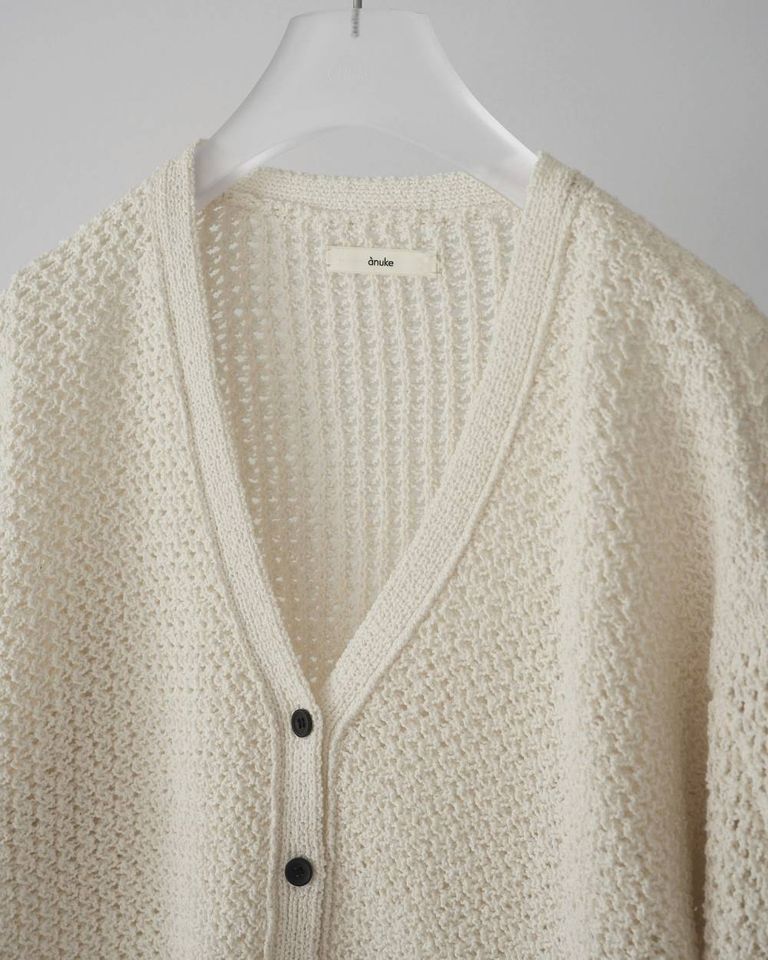 新入荷 残りわずか 再販売なし ànuke クロシェニットカーディガン (アイボリー) Crochet Knit Cardigan (Ivory) / 26SS ¥18,700 税込 170 ポイント還元 発送目安日:4営業日以内 この商品は 送料無料 でお届けします 注文 サイズ(採寸)情報 質問する お気に入り SIZE F 着丈 56cm 肩幅 50cm バスト 104cm 袖丈 61cm 袖ぐり 46cm 裾幅 45cm 単位:cm 商品説明 表情豊かな編み地が目を惹く、クロシェニットカーディガン。壁糸と呼ばれる糸を使用し、立体感のある編み地に。丸みを持たせた袖のシルエットとゆとりのあるサイジング。羽織りとしてはもちろん、ボタンを留めてプルオーバーとして着るのもおすすめです。ベルトでウエストマークすれば、また違ったバランスに。同素材のCrochet Knit Skirtとのセットアップで、より洗練された印象を楽しめます。 スピン保証 お買い物の際に「スピン保証」という新しいオプションを選べるようになりました。 詳細情報 カラー アイボリー 素材 綿91% ナイロン9% ブランド ànuke 品番 62610511-IV カテゴリ トップス > カーディガン 性別 女性 返品 不可 ラッピング 不可 発送目安日 4営業日以内 配送方法 ヤマト運輸(送料について) お支払い方法 本商品でご利用可能な決済方法は下記となります。各お支払い方法についての詳細はショッピングガイドをご覧ください クレジットカード セキュリティコードとはクレジットカード裏面のサイン欄上部に記載されている数字の一番右の3桁の数字です。アメリカン・エキスプレス・カード提携のクレジットカードの場合、セキュリティコードはクレジットカード表面に記載されている4桁の数字となります。 Amazon Pay 楽天ペイ PayPay(ペイペイ) あと払い (ペイディ) 事前登録不要、クレジットカード登録不要。 メールアドレスと携帯電話番号だけで、今すぐ購入可能。 お支払いは翌月27日までに、コンビニ払い・銀行振込・口座振替で。 1か月に何度購入しても、お支払いは翌月まとめて1回でOK。 さらに、ペイディアプリから本人確認をすると、分割手数料無料*の3回あと払い**、ご利用可能額の確認、使い過ぎを防止する予算設定など、便利な機能がご利用いただけます。 *口座振替・銀行振込のみ無料 **1回のご利用金額が3,000円以上の場合のみ利用可能 サイズ(採寸)情報 SIZE F 着丈 56cm 肩幅 50cm バスト 104cm 袖丈 61cm 袖ぐり 46cm 裾幅 45cm 単位:cm このアイテムをシェア この商品について質問する お問い合わせの入力内容が失われますがよろしいですか?