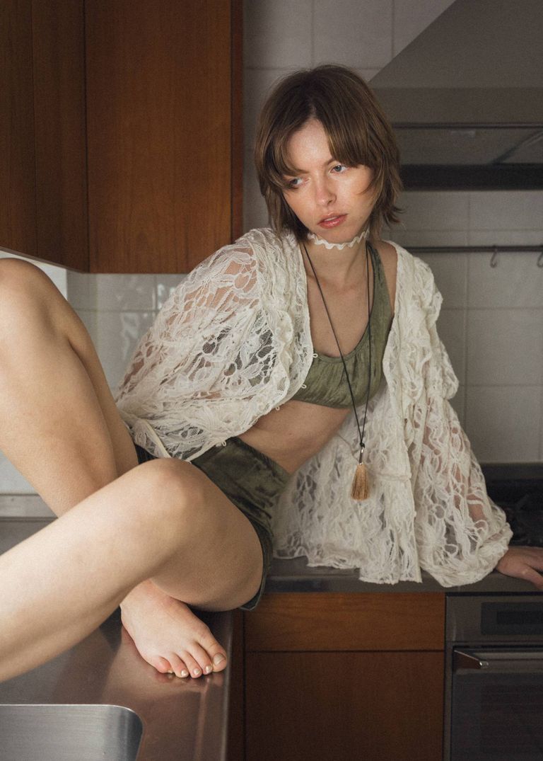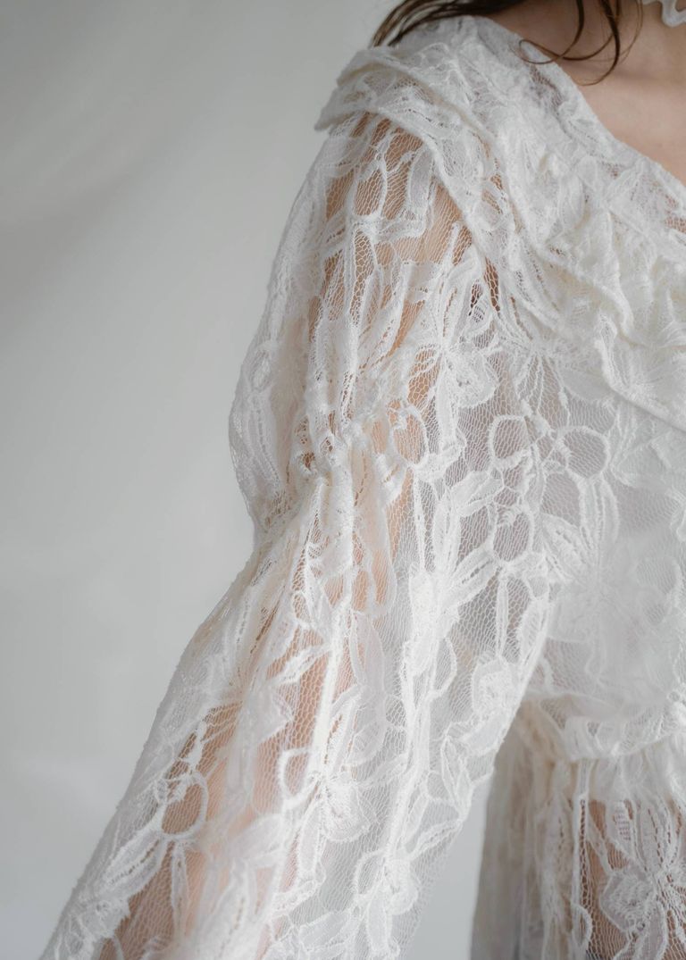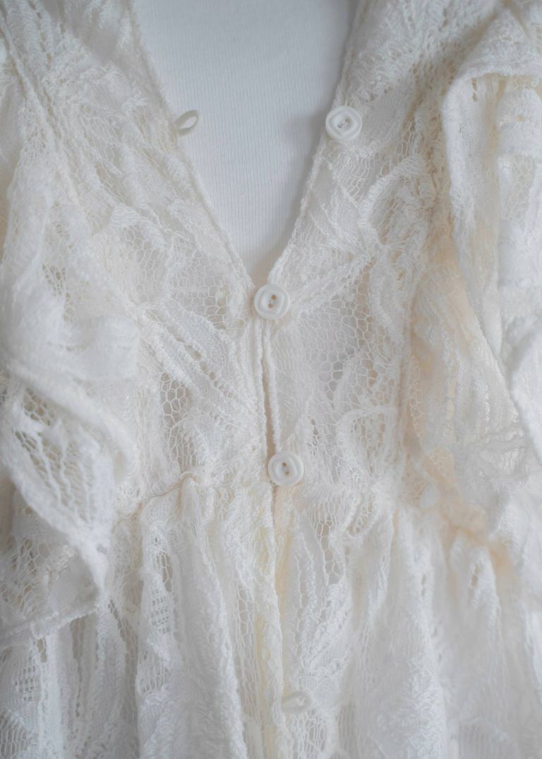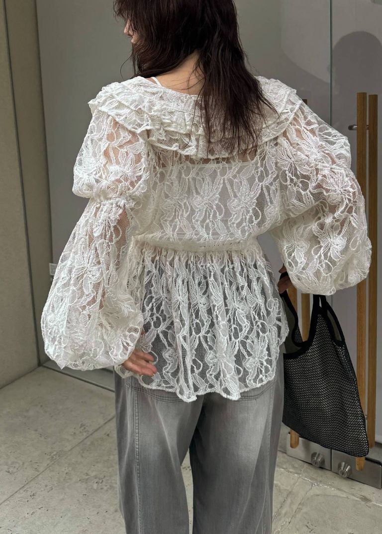 ボリュームスリーブ レースブラウス (ナチュラル) tiered frill neck volume sleeve lace BL (Natural) / 26SS