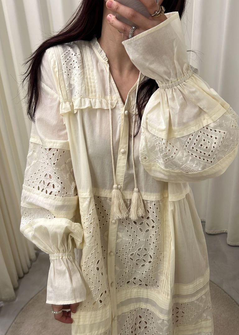 ティアードワンピース (ナチュラル) pieced cotton lace tiered volume OP (Natural) / 26SS