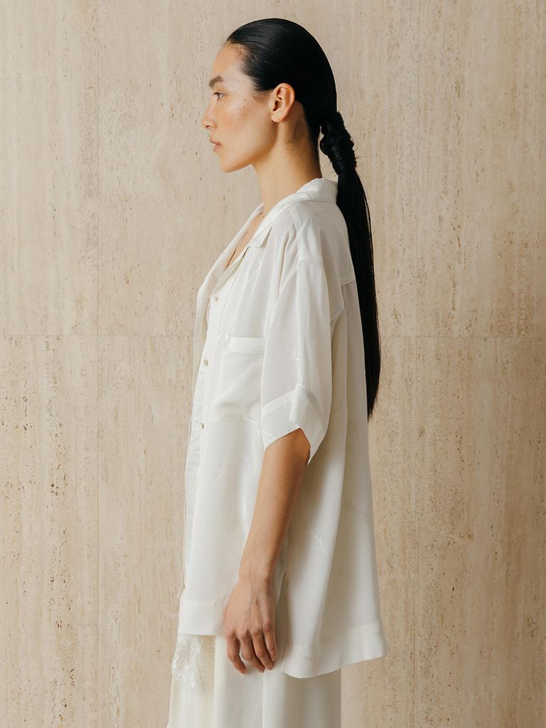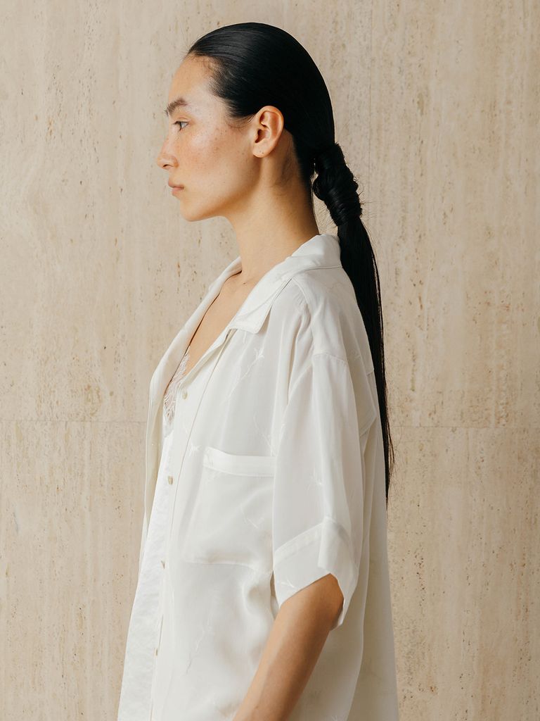 新入荷 CREDONA サテンジャガードシャツ (アイボリー) SATIN JQ SHIRTS (Ivory) / 26SS ¥19,800 税込 180 ポイント還元 発送目安日:1-3営業日 注文 サイズ(採寸)情報 質問する お気に入り サイズ F 着丈 68.5cm バスト 129cm 袖丈 23cm 肩幅 52cm 前下がり 9.7cm 裾幅 63cm スリット丈 15cm 単位:cm 商品説明 日本特有の織物産地・桐生でオリジナル作成したサテンジャガード生地を使用したシャツ。繊細な織り柄と、上品な艶感が魅力の一枚です。軽やかでなめらかな肌触りに加え、程よい落ち感が美しいシルエットを演出。開襟のデザインとリラックス感のあるシルエットで、抜け感のある着こなしに仕上がります。同素材のパンツやジャケットと合わせたコーディネートもおすすめです。 詳細情報 カラー アイボリー 素材 表地:レーヨン62% 再生繊維(セルロース)38% 裏地:(IVOのみ)ポリエステル100% 別布:ポリエステル100% ブランド CREDONA 品番 1426220006-IV カテゴリ トップス > シャツ・ブラウス 性別 女性 返品 不可 ラッピング 不可 発送目安日 1-3営業日 配送方法 ヤマト運輸(送料について) お支払い方法 本商品でご利用可能な決済方法は下記となります。各お支払い方法についての詳細はショッピングガイドをご覧ください クレジットカード セキュリティコードとはクレジットカード裏面のサイン欄上部に記載されている数字の一番右の3桁の数字です。アメリカン・エキスプレス・カード提携のクレジットカードの場合、セキュリティコードはクレジットカード表面に記載されている4桁の数字となります。 Amazon Pay 楽天ペイ PayPay(ペイペイ) あと払い (ペイディ) 事前登録不要、クレジットカード登録不要。 メールアドレスと携帯電話番号だけで、今すぐ購入可能。 お支払いは翌月27日までに、コンビニ払い・銀行振込・口座振替で。 1か月に何度購入しても、お支払いは翌月まとめて1回でOK。 さらに、ペイディアプリから本人確認をすると、分割手数料無料*の3回あと払い**、ご利用可能額の確認、使い過ぎを防止する予算設定など、便利な機能がご利用いただけます。 *口座振替・銀行振込のみ無料 **1回のご利用金額が3,000円以上の場合のみ利用可能 サイズ(採寸)情報 サイズ F 着丈 68.5cm バスト 129cm 袖丈 23cm 肩幅 52cm 前下がり 9.7cm 裾幅 63cm スリット丈 15cm 単位:cm このアイテムをシェア この商品について質問する